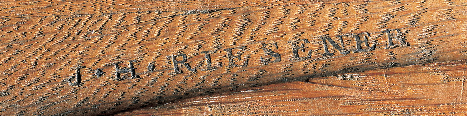 Born in Germany, Riesener entered the atelier of Jean-François Oeben and became his successor after marrying Oeben’s widow in 1767, and taking over the workshop of the ébéniste du roi at the Arsenal. He became maître in 1768.