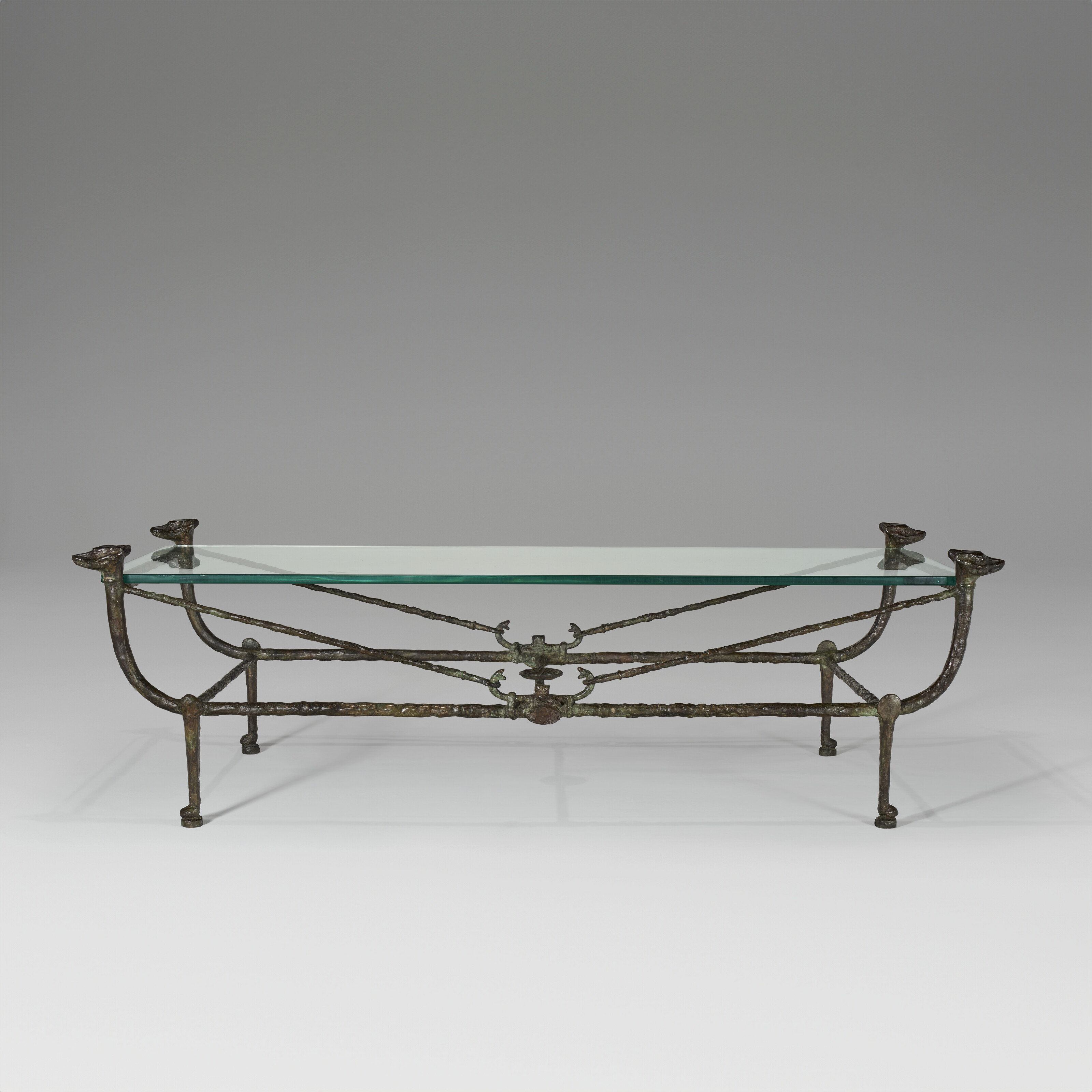 Diego Giacometti (1902-1985), 'Berceau' Low Table, Modèle aux Renards, circa 1974. Patinated bronze, glass. 21¾ x 72¾ x 30 in (55.3 x 184.8 x 76.2 cm). Sold for $4,528,000 in 21st Century Evening Sale Featuring Works from the Edlis | Neeson Collection on 19 November 2025 at Christie’s in New York