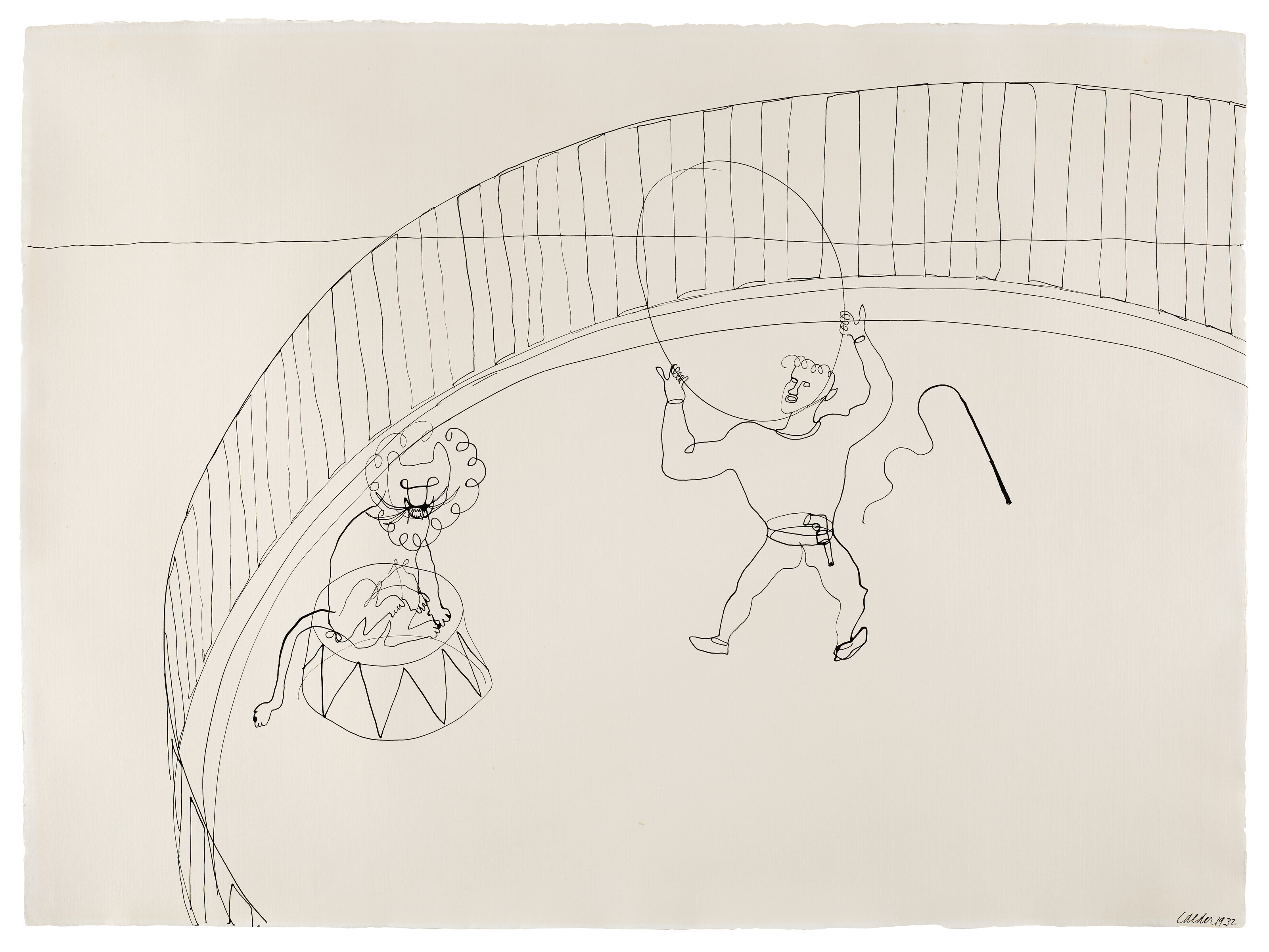 Alexander Calder (b. 1898), The Lion Tamer, 1932. Ink on paper. 22½ x 30½ in (57.2 x 77.5 cm). Sold for $508,000 in the Post-War & Contemporary Art Day Sale on 20 November 2025 at Christie’s in New York