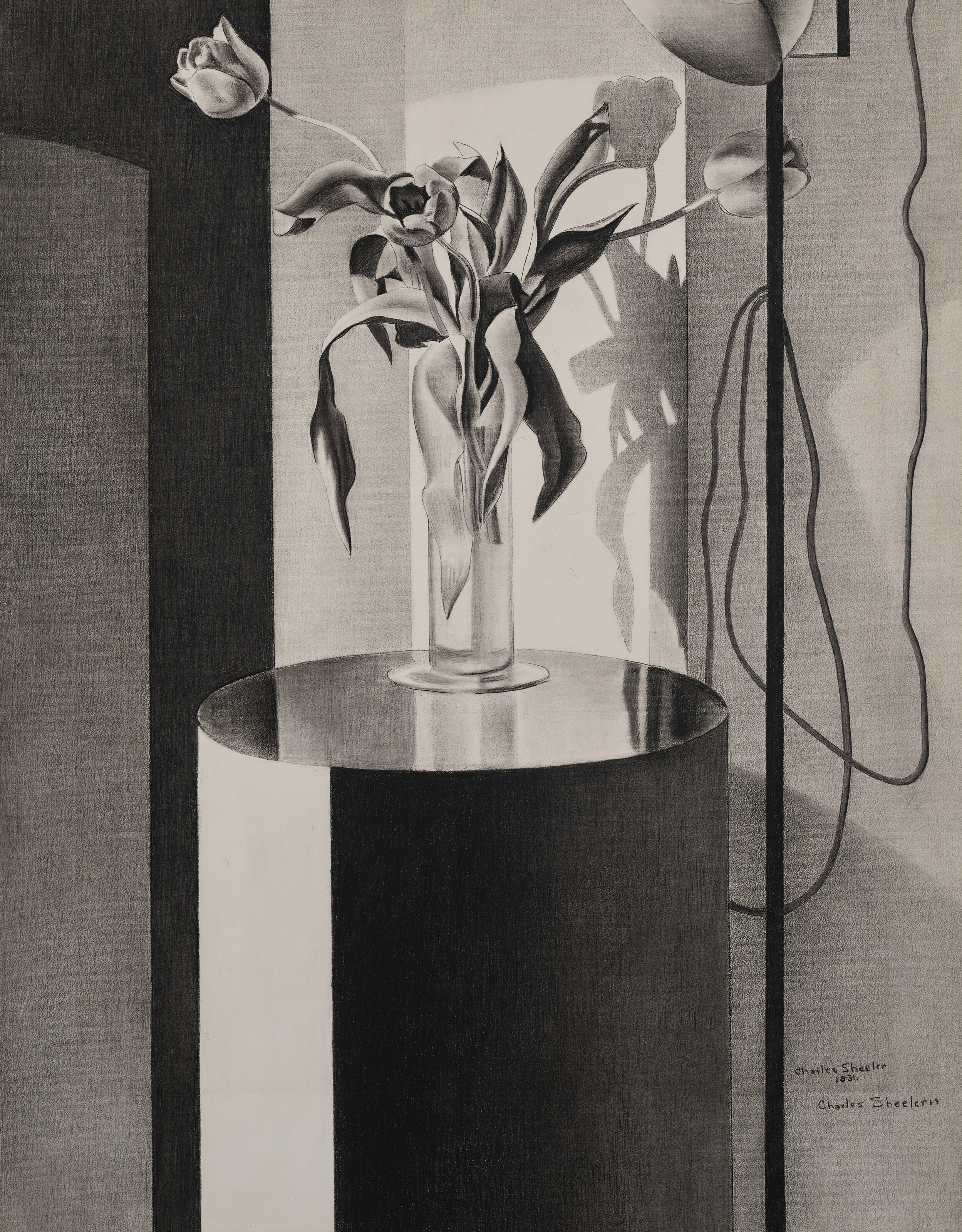 Charles Sheeler (1883-1965), Tulips, 1931. Conté crayon on paper laid down on paperboard. 30 x 23 in (76.2 x 58.4 cm). Estimate: $600,000-800,000. Offered in Modern American Art on 16 April 2026 at Christie’s in New York