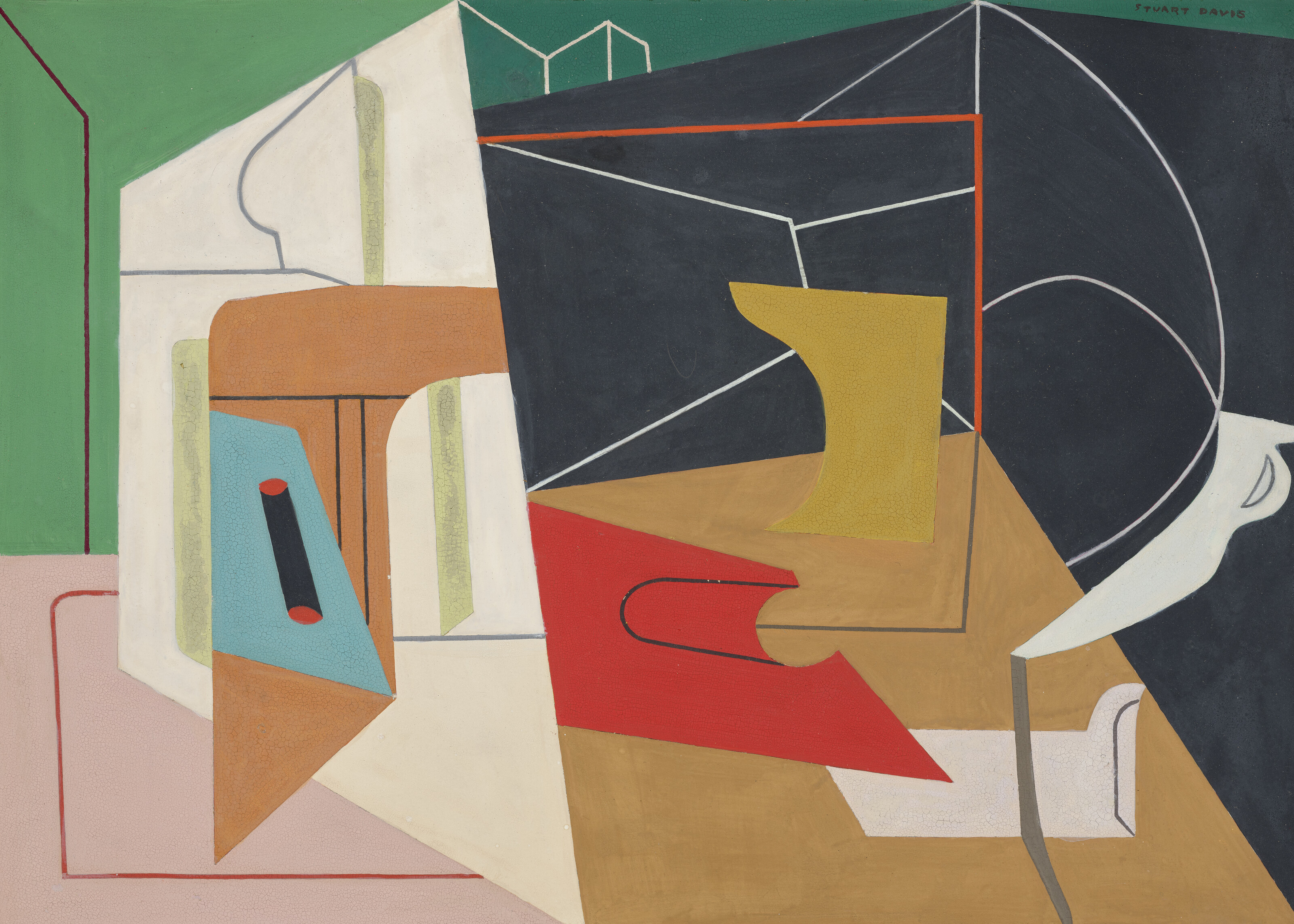 In 1928 the artist Stuart Davis (1892-1964) moved to Montparnasse, attracted by its vibrancy and its mix of modern and traditional architecture. He met Alexander Calder and Fernand Léger, and embarked on a series of abstracted cityscapes that incorporated planes of colour and overlapping lines.