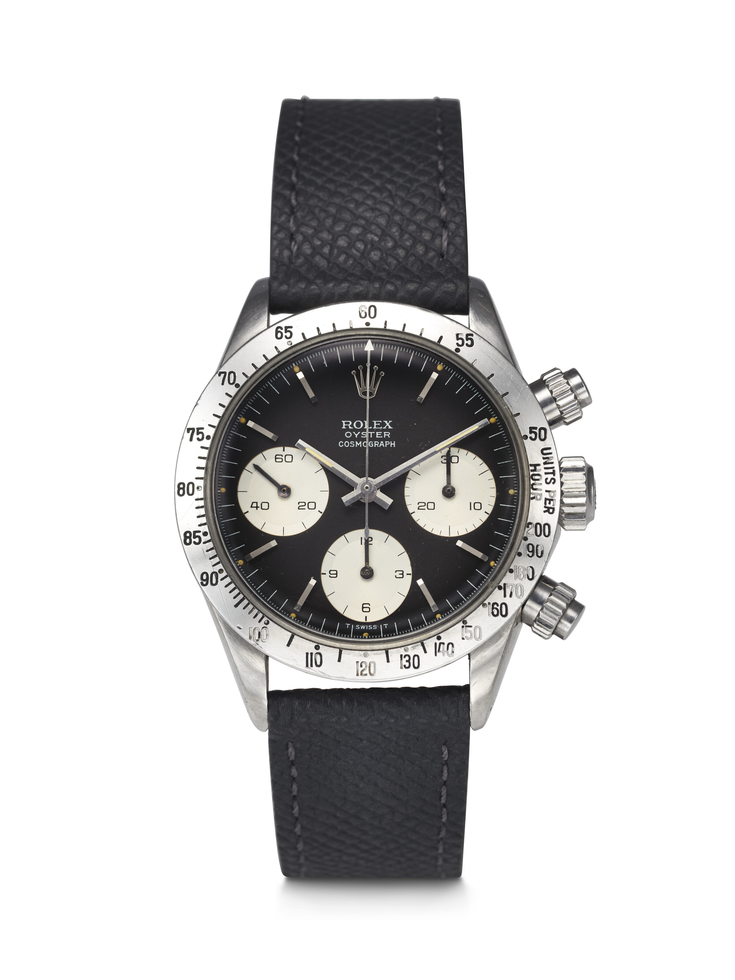 Rolex. An attractive and early stainless steel chronograph wristwatch with black dial Daytona Model, ref. 6265, case no. 2’788’279, c. 1971. Estimate: $40,000-80,000. Offered in Important Watches on 9 December 2025 at Christie’s in New York