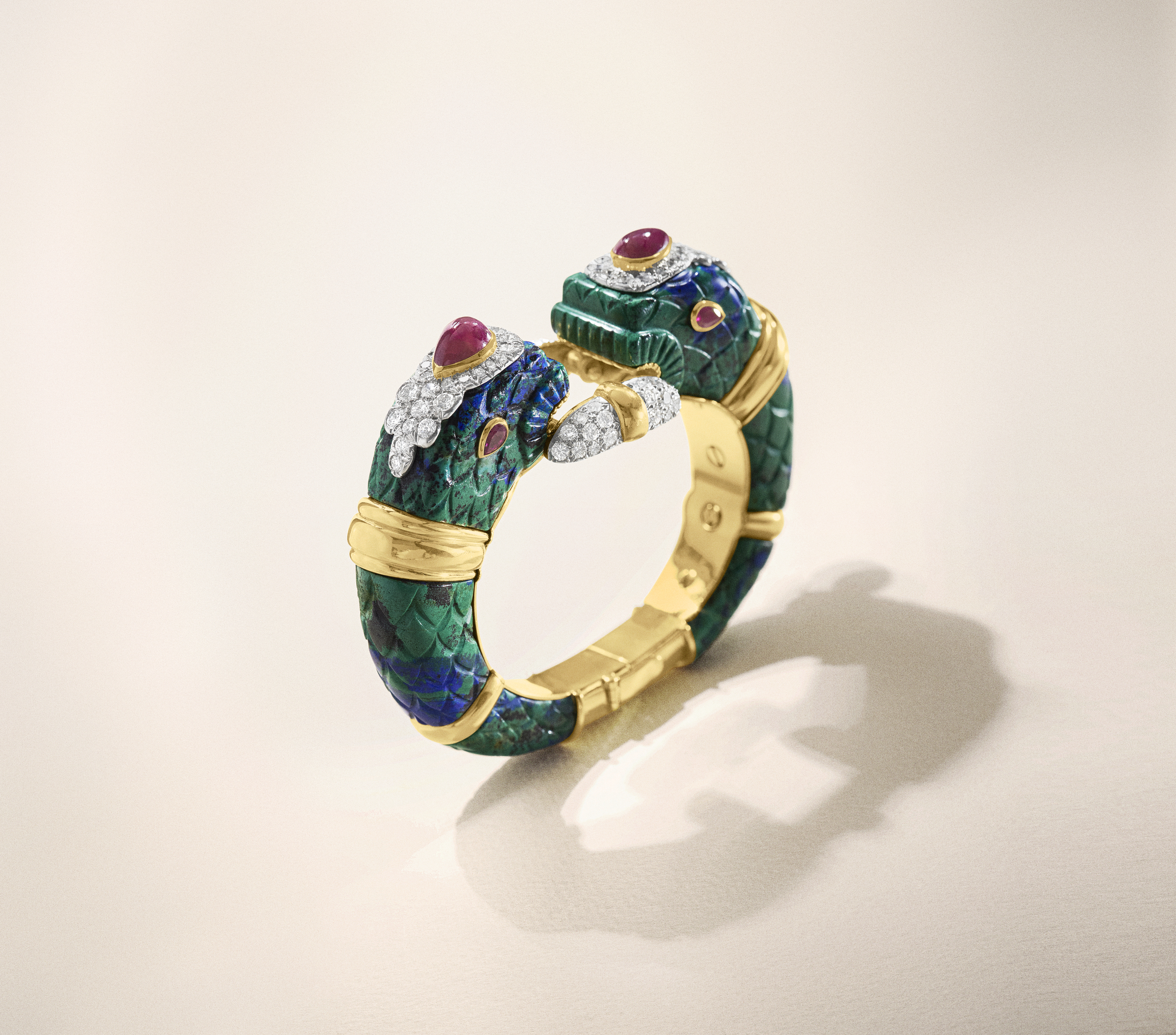 Azurmalachite, ruby and diamond ‘Chimera’ bracelet by David Webb. Estimate: $20,000-30,000. Offered in Jewels Online on 9-19 March 2026 at Christie’s Online