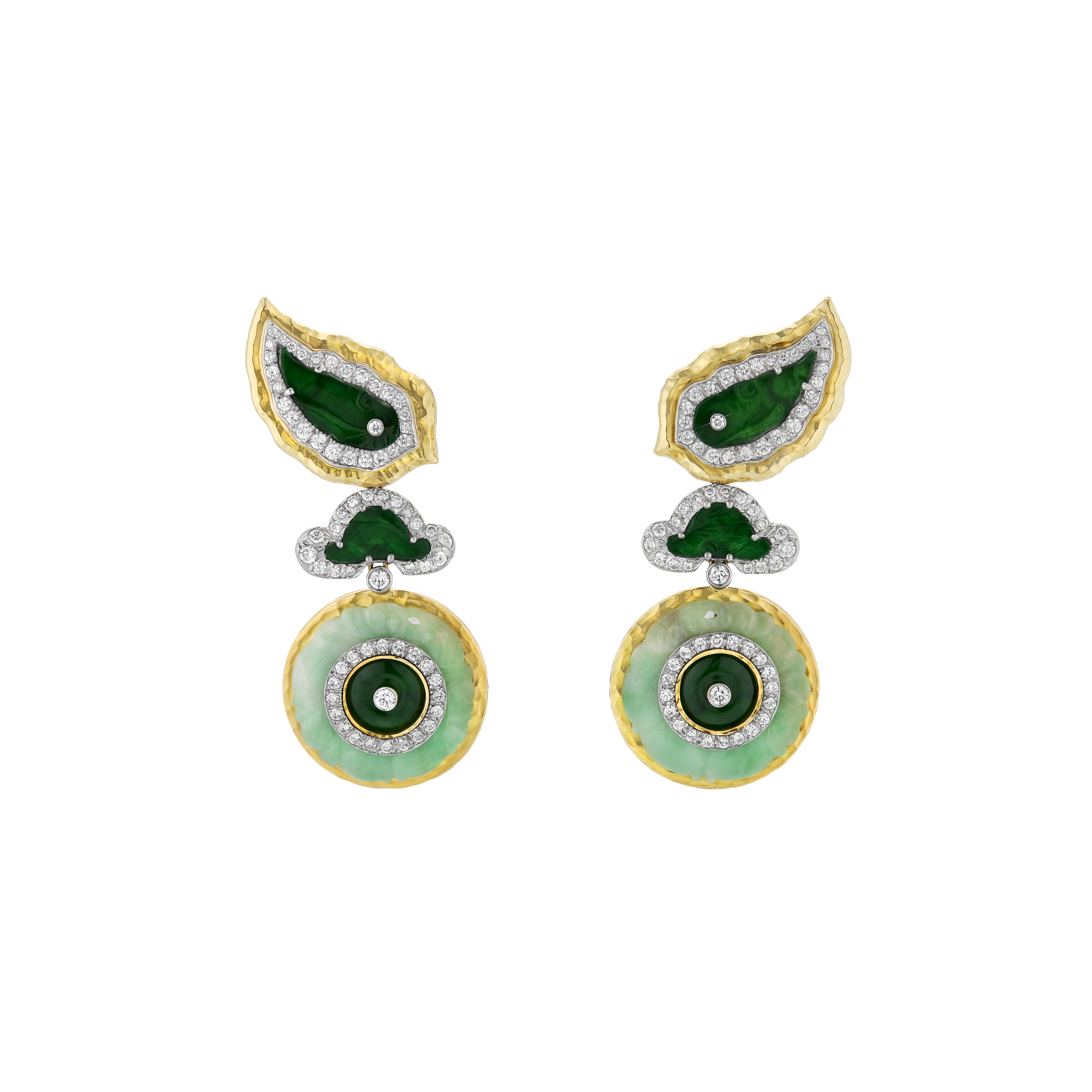 In the 18k yellow gold and platinum earrings below right, the diamond details adds a touch of sophistication.