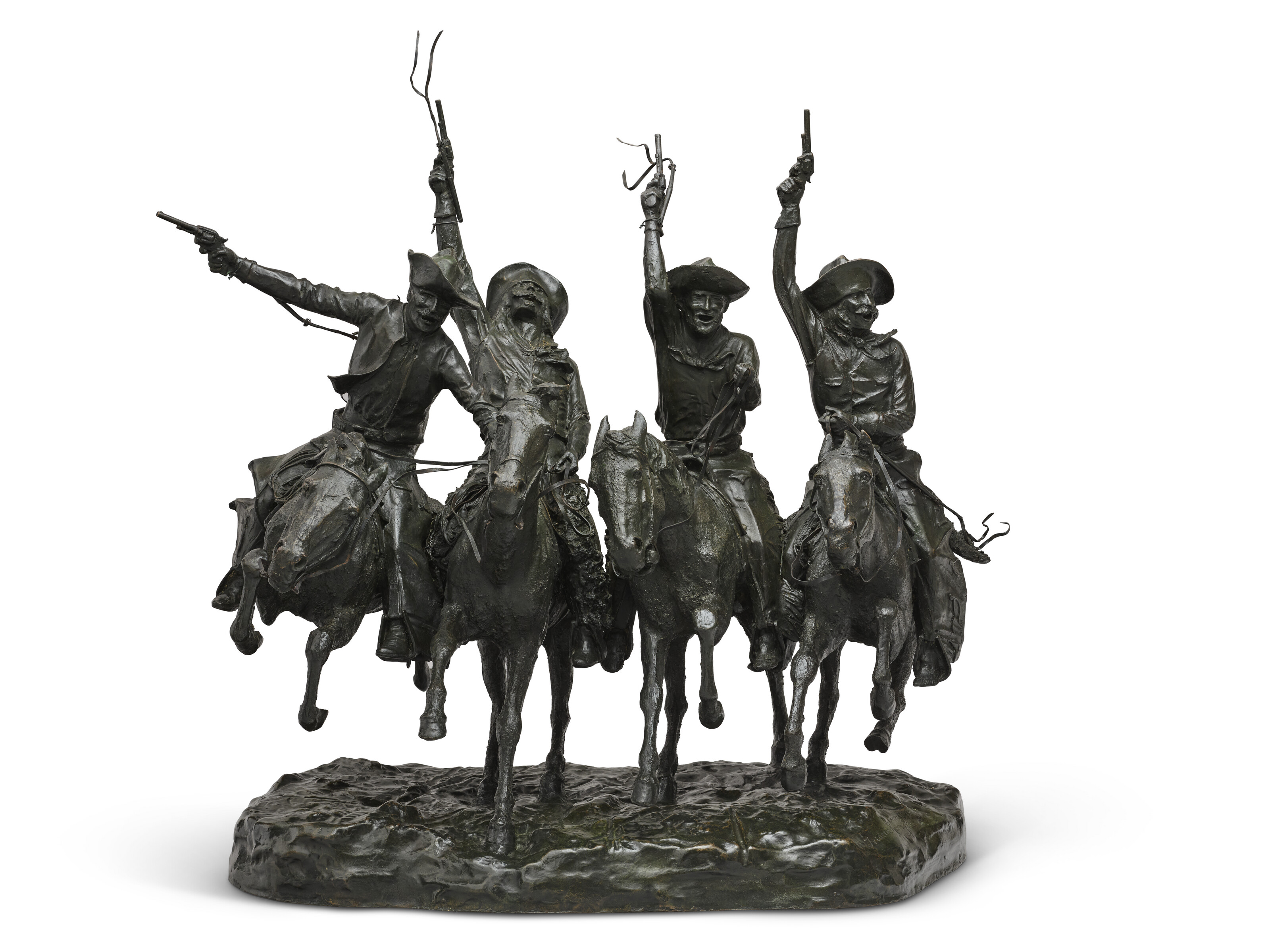 Frederic Remington (1861-1909), Coming Through the Rye, modeled in 1902; cast by 1916. Bronze with dark green patina 28 in (71.1 cm) high. Estimate: $4,000,000-6,000,000. Offered in Visions of the West: The William I. Koch Collection Evening Sale on 20 January 2025 at Christie’s in New York