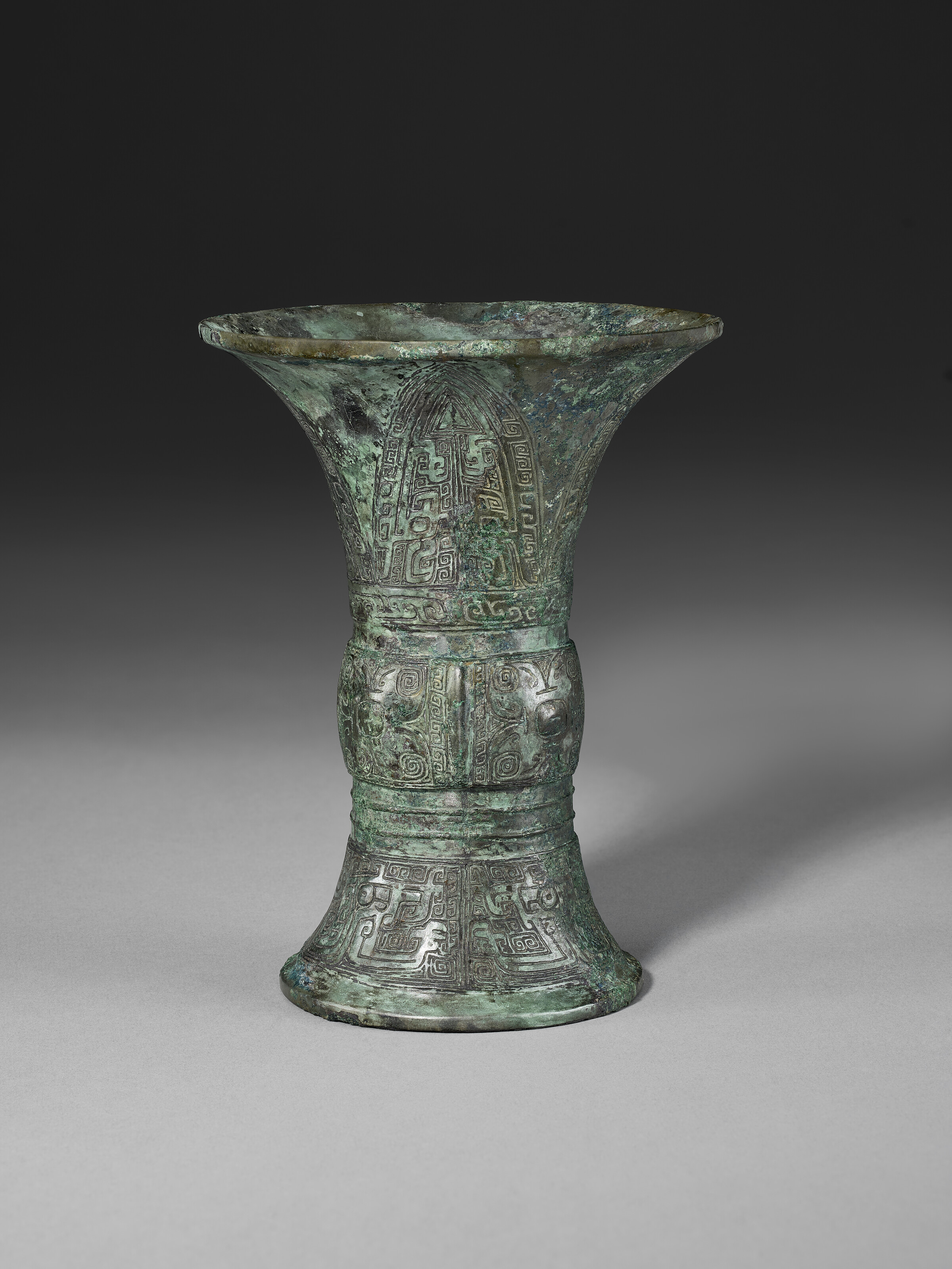 A rare small bronze ritual wine vessel, gu, late Shang dynasty, 13th-11th century BC. 5¹¹⁄₁₆ in (14.4 cm) high. Estimate: $30,000-50,000. Offered in Important Chinese Art on 26-27 March 2026 at Christie’s in New York