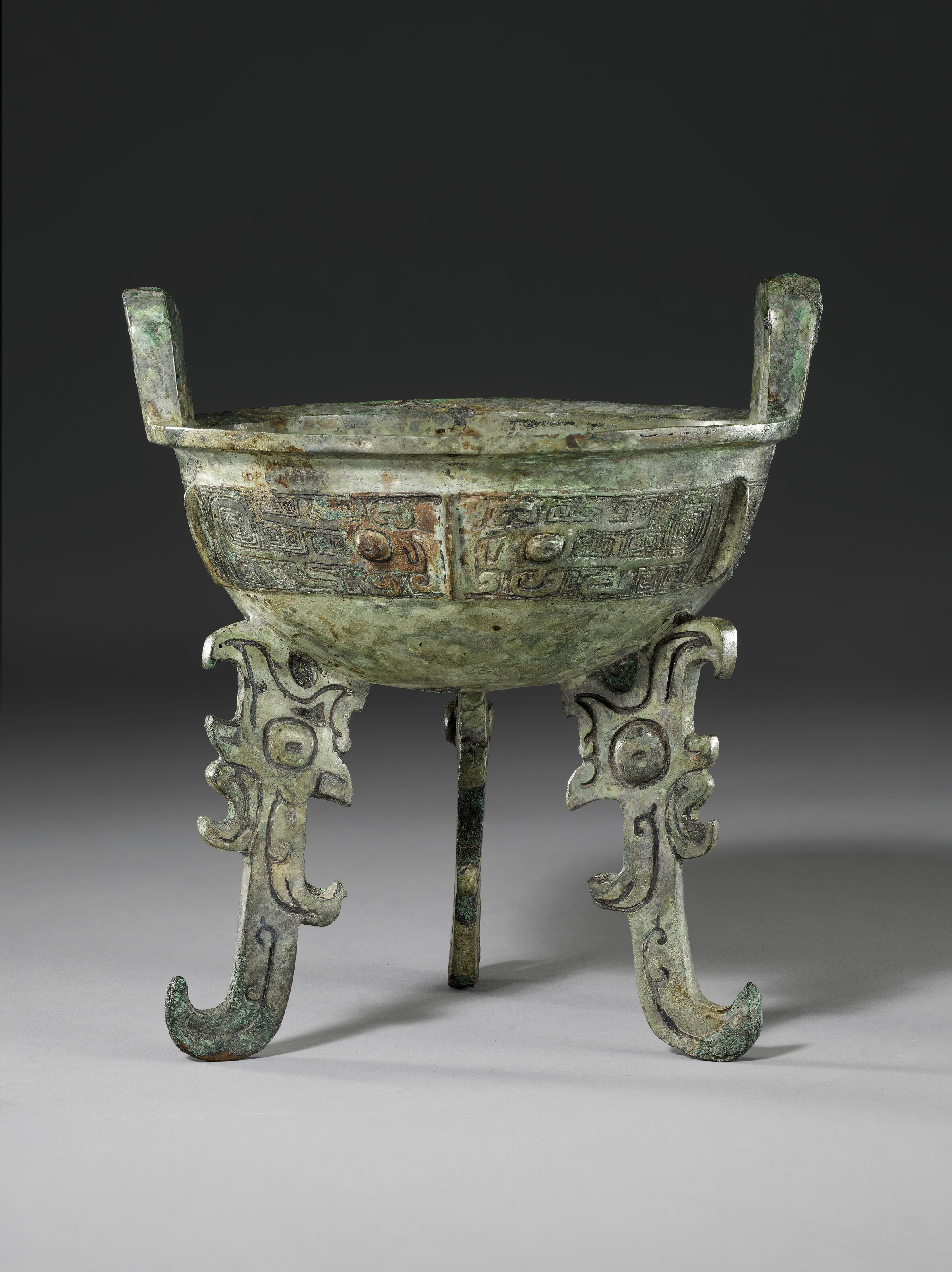 Objects that fall under the category of ‘ancient Chinese bronzes’ span a period ranging some 1,800 years — from the Shang dynasty (1600-100 BC) to the Han (206 BC-220 AD). It is important to understand the different styles associated with each period. The more ‘classic’ vessels — those most closely associated with archaic Chinese bronzes — were typically produced in the Shang (1600-1100 BC) and Western Zhou (1100-771 BC) dynasties.