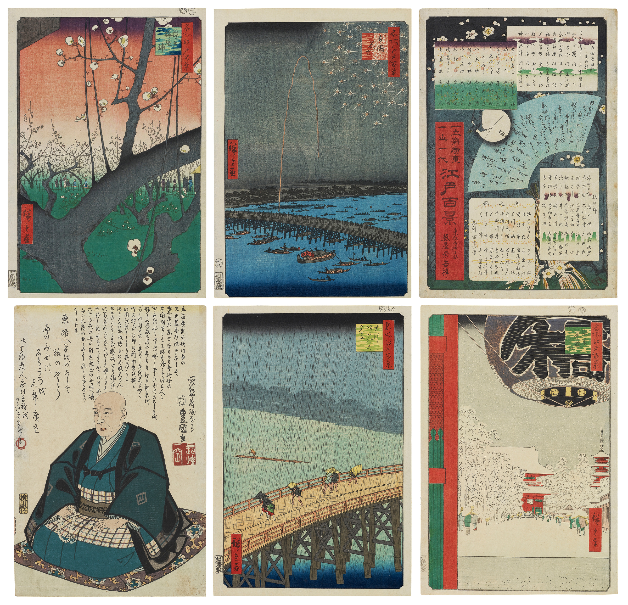 Utagawa Hiroshige (1797-1858), Utagawa Hiroshige II (1826-1869) and Utagawa Kunisada (1786-1864), Meisho Edo hyakkei (One hundred famous views of Edo) and Memorial Portait of Hiroshige, 1856-1858. Estimate: $200,000-300,000. Offered in Japanese and Korean Art on 24 March 2026 at Christie’s in New York