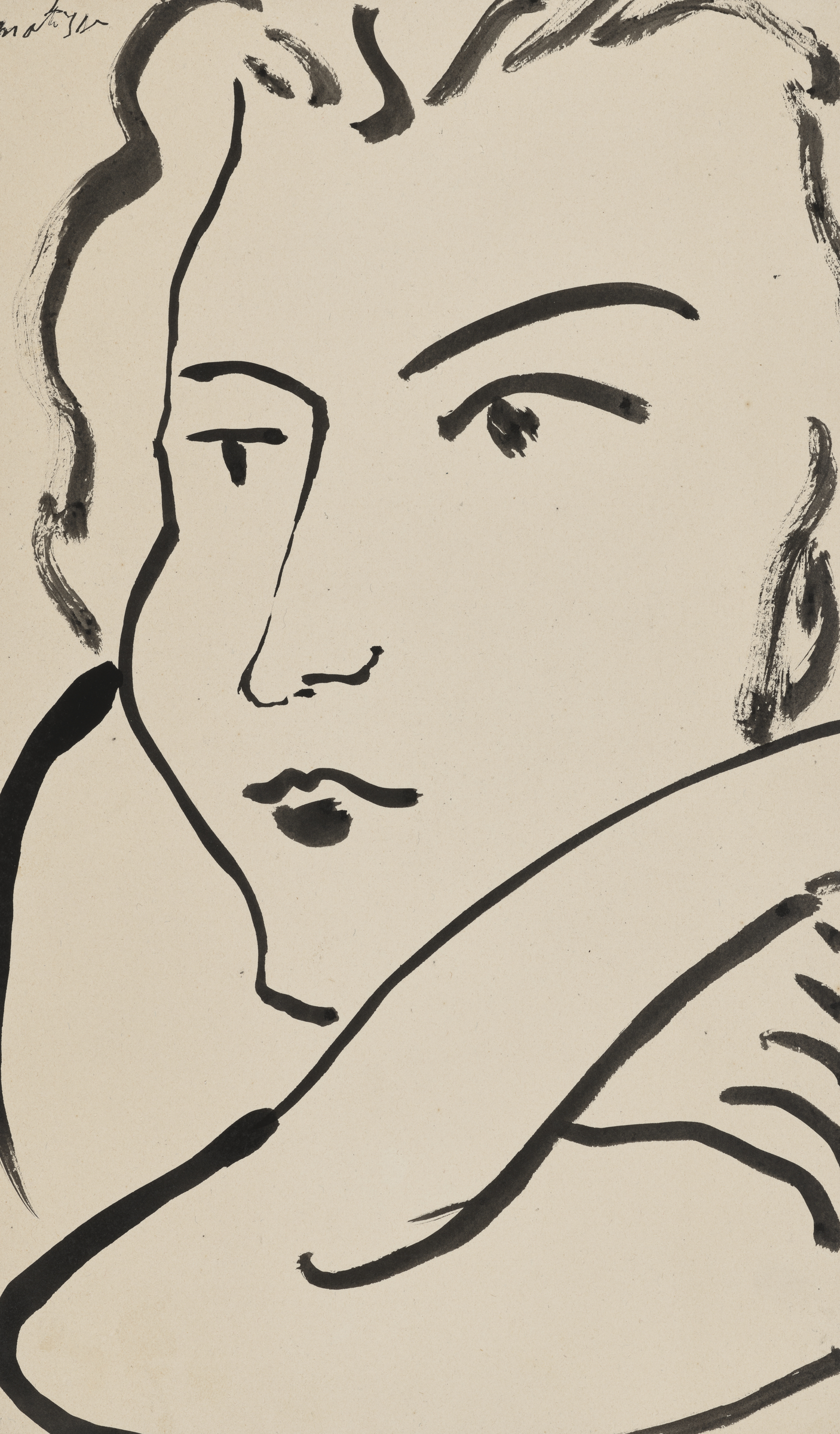 Henri Matisse (1869-1954), Portrait de Lydia, 1946. Brush and India ink on paper. 13⅛ x 7⅞ in (33.3 x 20 cm). Estimate: $200,000-300,000. Offered in Impressionist and Modern Works on Paper on 19 May 2026 at Christie’s in New York