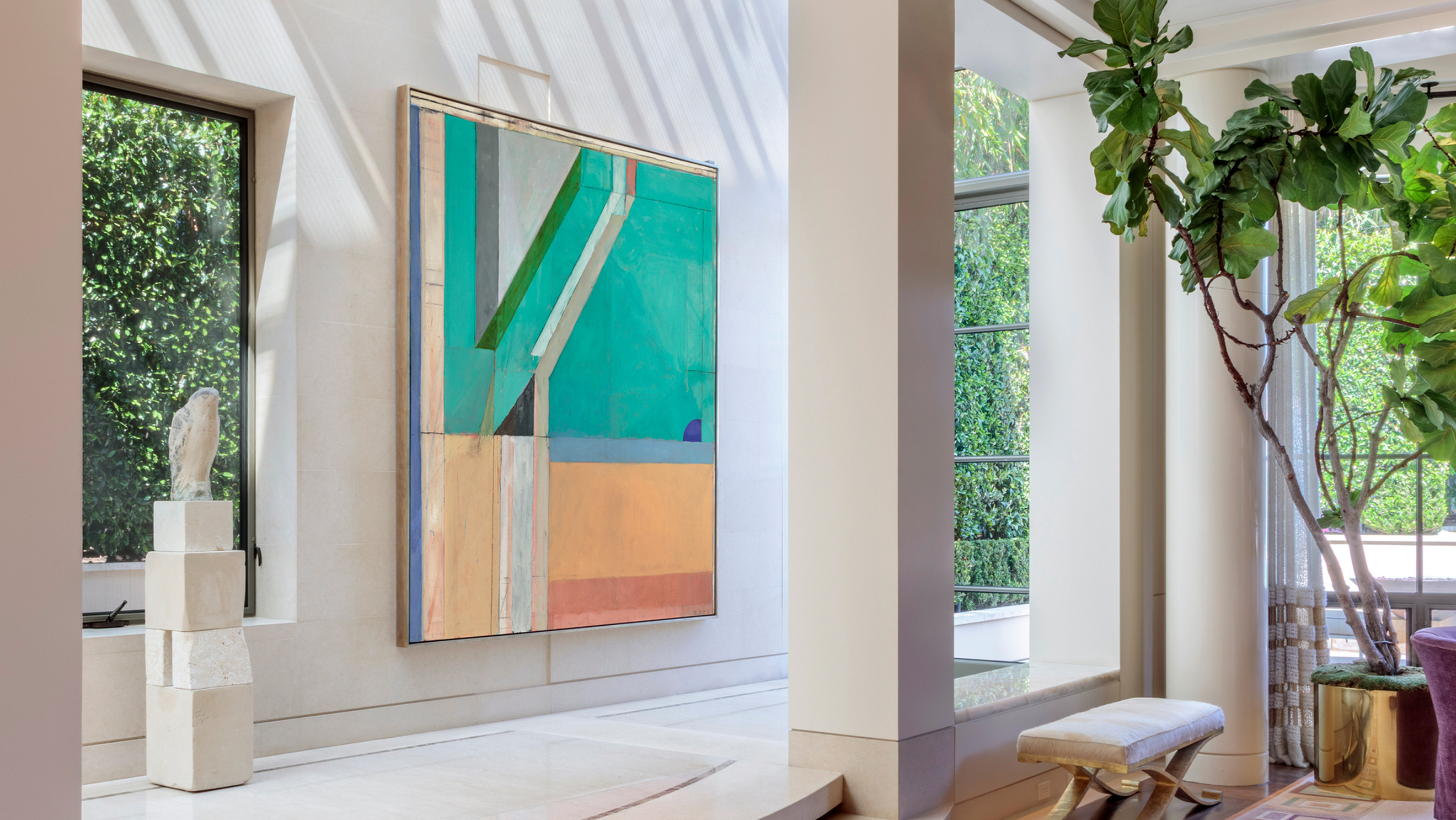 Elaine Wynn’s Los Angeles residence. Richard Diebenkorn, Ocean Park #40, 1971. Oil and charcoal on canvas. 93 x 81 in. Estimate: $15,000,000-25,000,000. Offered in the 20th Century Evening Sale in November 2025 at Christie’s in New York. Photography by Joshua White - JW Pictures