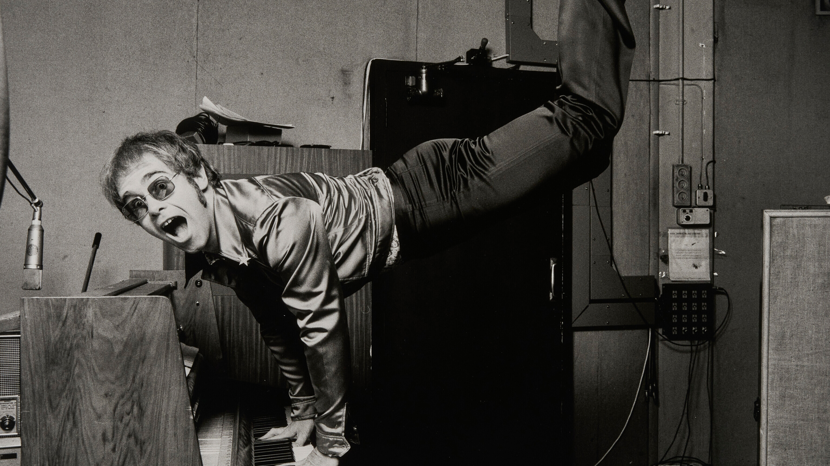 Terry O’Neill (1938–2019), Elton John Performing a Handstand, 1972. Gelatin silver print. Image: 17 3⁄4 x 22 in (45 x 55.8 cm); sheet: 19 7⁄8 x 23 7⁄8 in (50.4 x 60.6 cm). Sold for $22,680 in The Collection of Sir Elton John: Elton’s Superstars on 28 February 2024 at Christie’s online