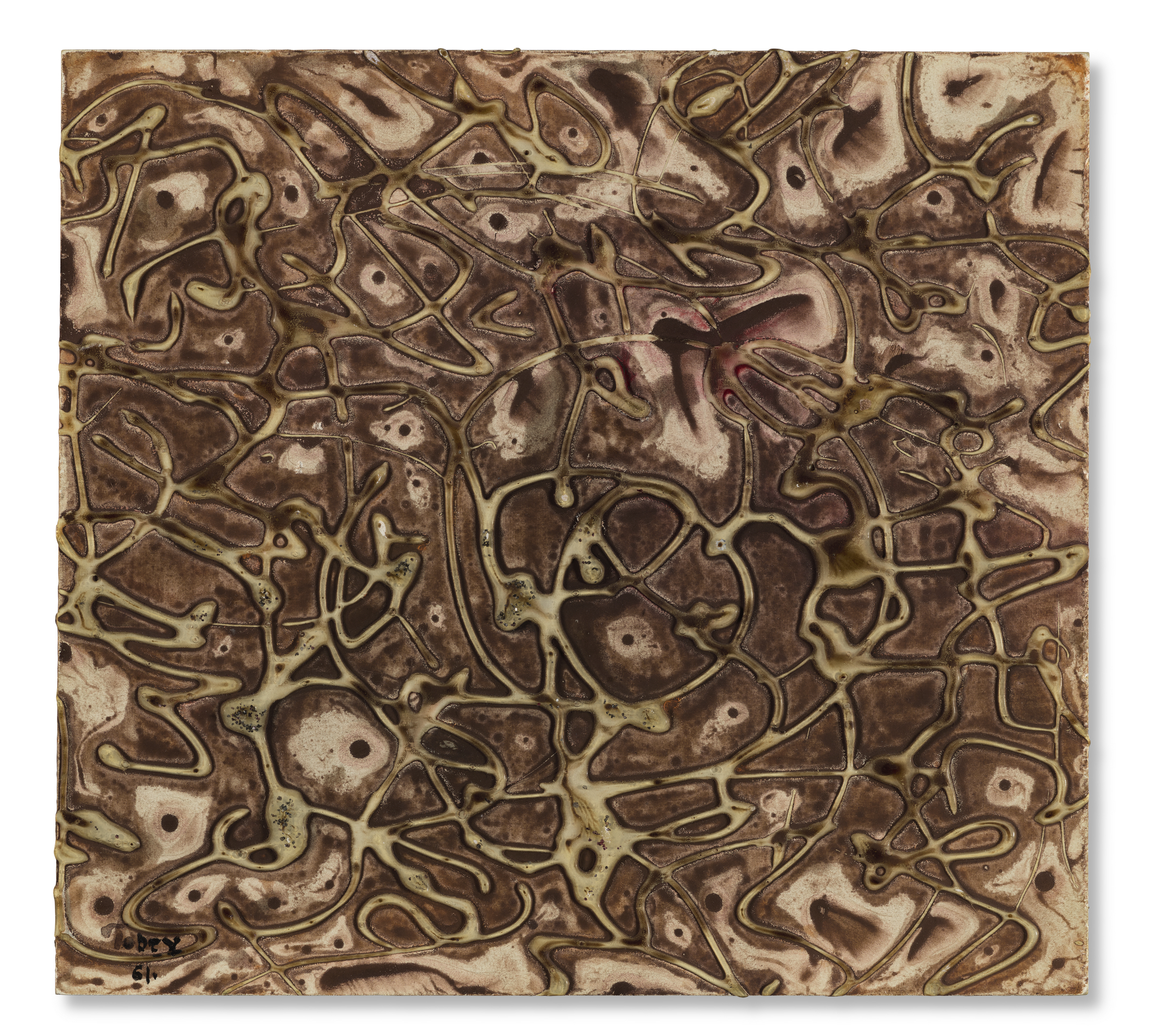 Mark Tobey (1890-1976), On the Moon, 1961. Tempera and glue on paperboard. 9 x 9¾ in (23 x 25 cm). Estimate: $8,000-12,000. Offered in First Open | Post-War & Contemporary Art, featuring Drawings from the Collection of the Late Janie C. Lee, Sold for the Benefit of the Menil Drawing Institute on 17-27 February 2026 at Christie’s in New York