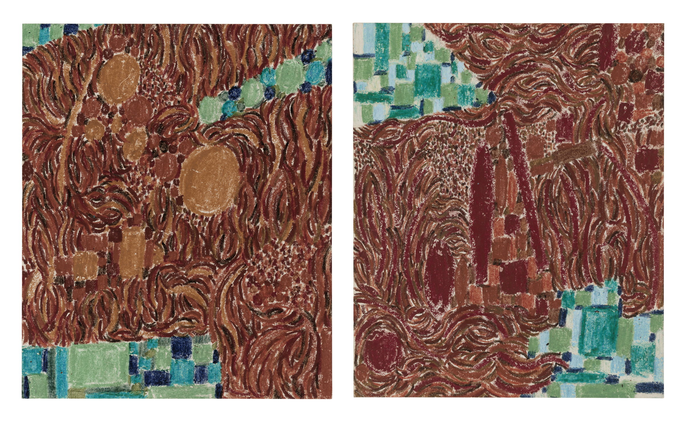 Two works: Lynne Drexler (1928-1999), Untitled, c. 1969. Wax crayon on paper. 9½ x 7⅞ in (24.1 x 20 cm); Untitled, c. 1969. Wax crayon on paper. 9½ x 7⅞ in (24.1 x 20 cm). $10,000-15,000. Offered in First Open | Post-War & Contemporary Art, featuring Drawings from the Collection of the Late Janie C. Lee, Sold for the Benefit of the Menil Drawing Institute on 17-27 February 2026 at Christie’s in New York