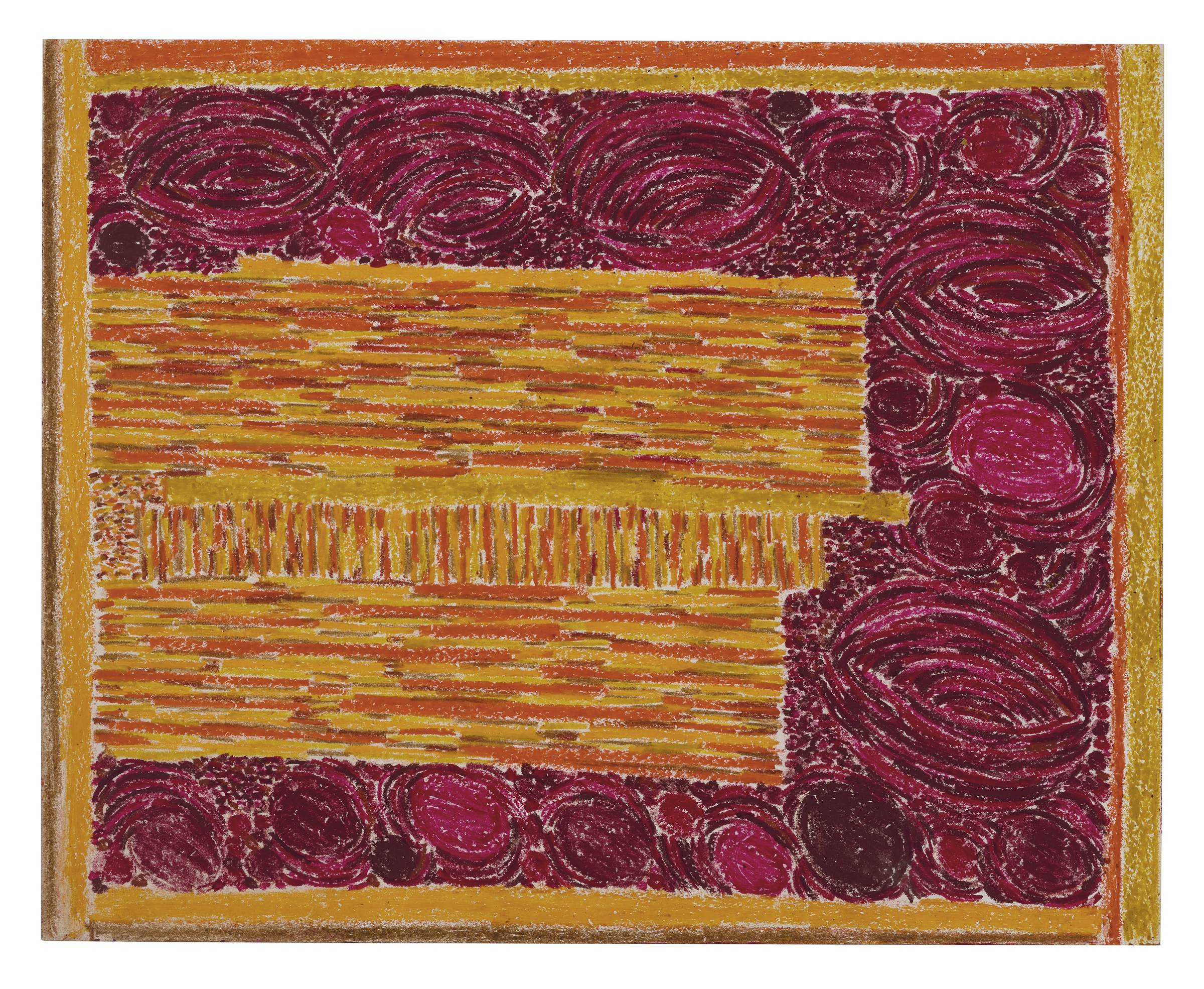 Lynne Drexler (1928-1999), Untitled, c. 1980. Wax crayon on paper. 13⅝ x 17 in (34.6 x 43.2 cm). Estimate: $8,000-12,000. Offered in First Open | Post-War & Contemporary Art, featuring Drawings from the Collection of the Late Janie C. Lee, Sold for the Benefit of the Menil Drawing Institute on 17-27 February 2026 at Christie’s in New York