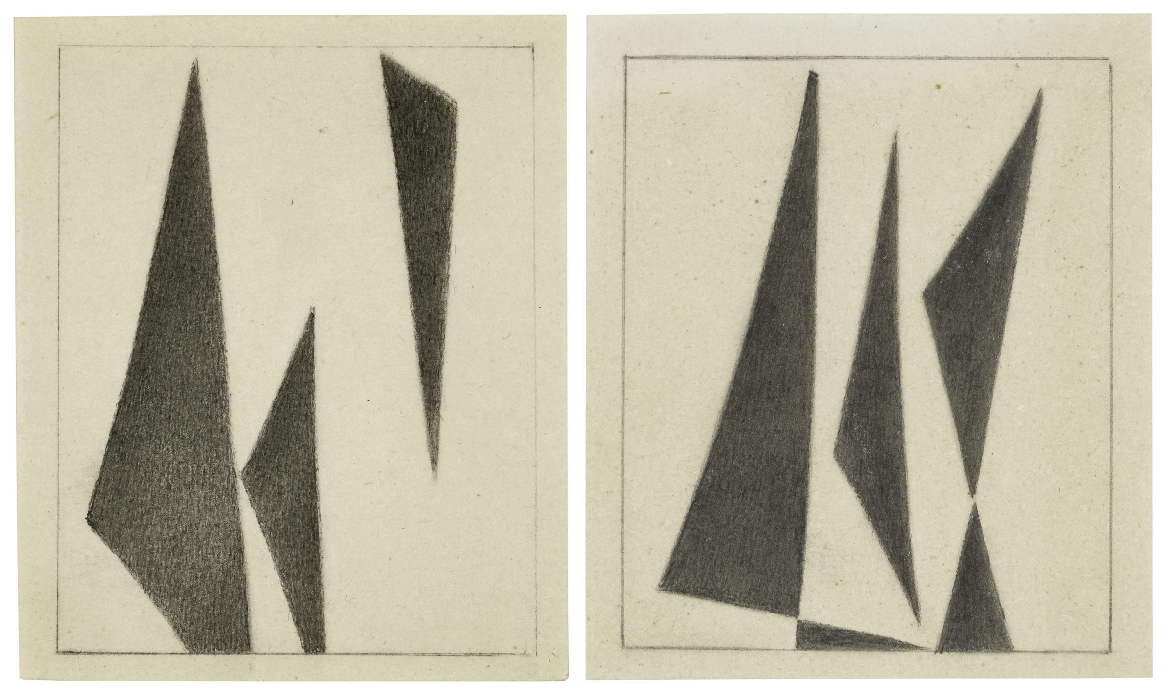 Two works: Myron Stout (1908-1987), #1 Drawing, 1968. Graphite on paper. Image: 2⅝ x 2 in (6.7 x 5.1 cm). Sheet: 4½ x 3⅞ in (11.4 x 9.8 cm). #2 Drawing, 1968. Graphite on paper. Image: 2½ x 2⅛ in (6.4 x 5.4 cm). Sheet: 3¼ x 4 in (8.3 x 10.2 cm). Estimate: $5,000-7,000. Offered in First Open | Post-War & Contemporary Art, featuring Drawings from the Collection of the Late Janie C. Lee, Sold for the Benefit of the Menil Drawing Institute on 17-27 February 2026 at Christie’s in New York