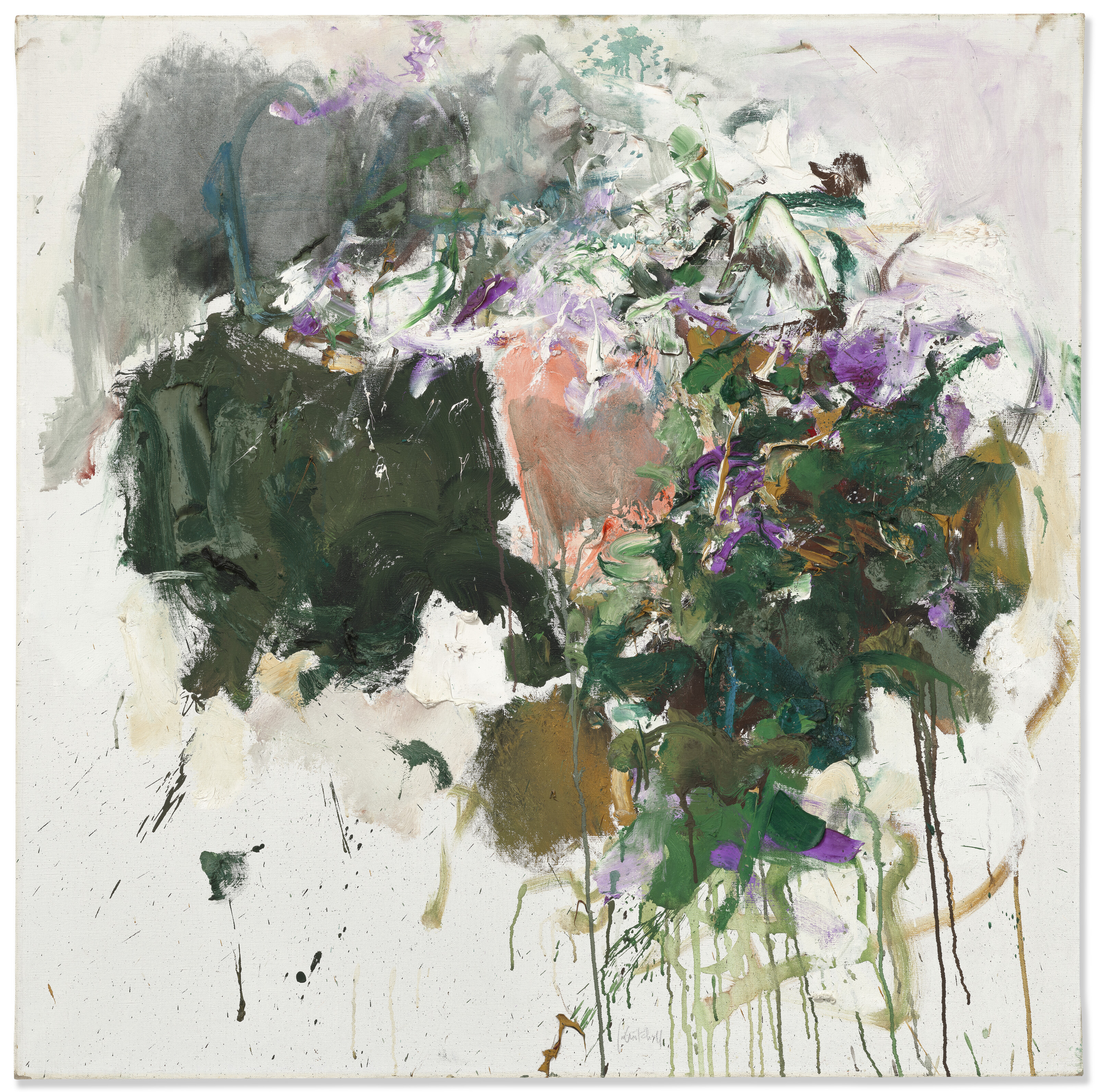 Joan Mitchell (1925-1992), Peinture II, 1964. Oil on canvas. 39⅛ x 39½ in (99.3 x 100.3 cm). Estimate: $2,500,000-3,500,000. Offered in Post-War to Present on 30 September 2025 at Christie’s in New York
