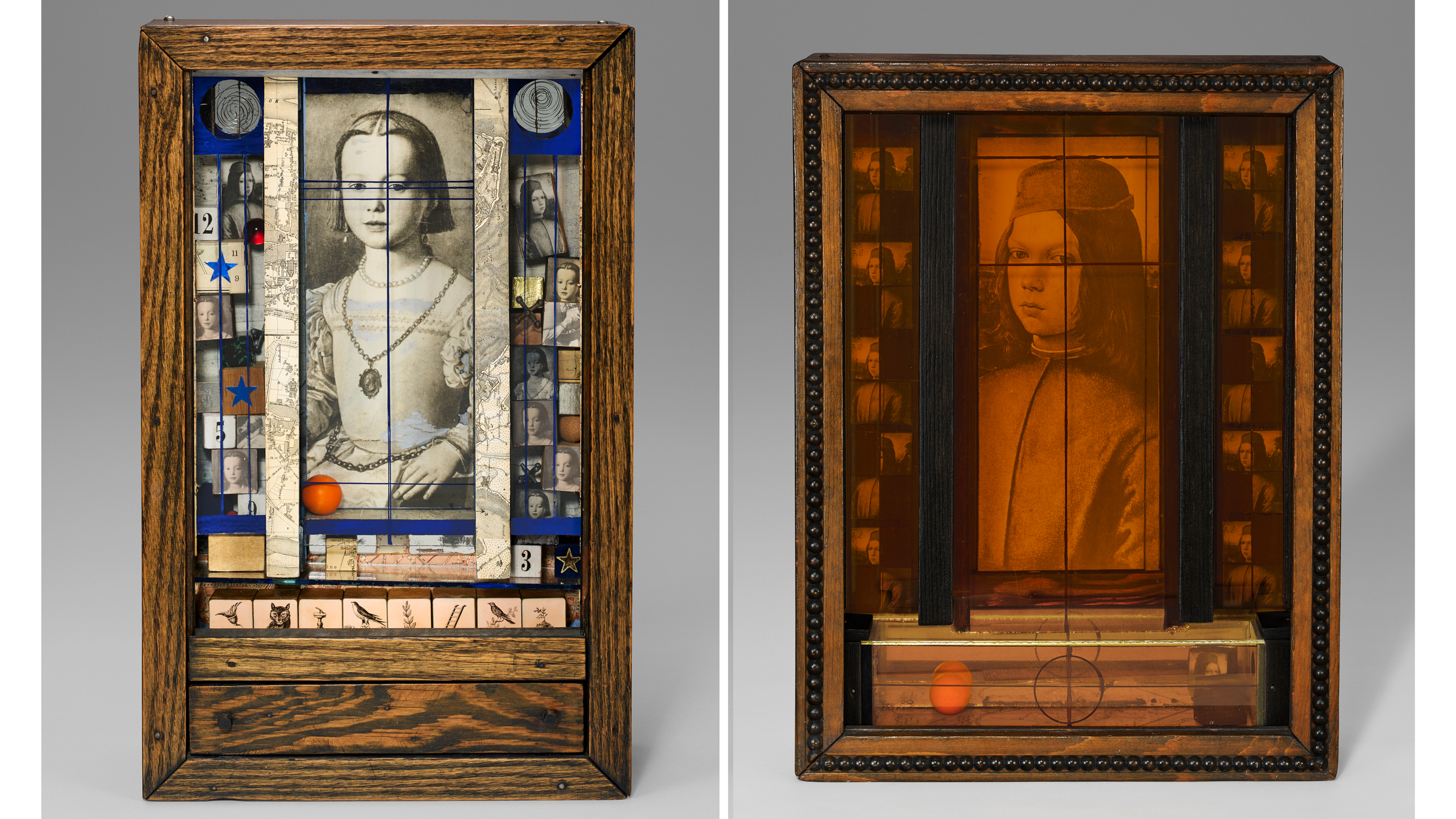 Left: Joseph Cornell (1903-1972), Untitled (Medici Princess), circa 1948. Wood box construction—wood, printed paper collage, paint, glass, metal, mirror, cork, marble, feather, coloured aluminum foil and thread. 17½ x 11 x 4½ in (44.5 x 27.9 x 11.4 cm). Estimate: $3,000,000–5,000,000. From the Collection of Agnes Gund. Right: Joseph Cornell (1903-1972), Untitled (Medici series, Pinturicchio Boy), circa 1950. Wood box construction —wood, printed paper collage, paint, ink, glass, tinted glass, and mirror. 15¾ x 12 x 4 in (40 x 30.5 x 10.2 cm). Estimate: $3,000,000–5,000,000. From the collection of Radical Genius: Works from A Distinguished Private Collection. Both offered in 20th Century Evening Sale on 18 May 2026 at Christie’s in New York