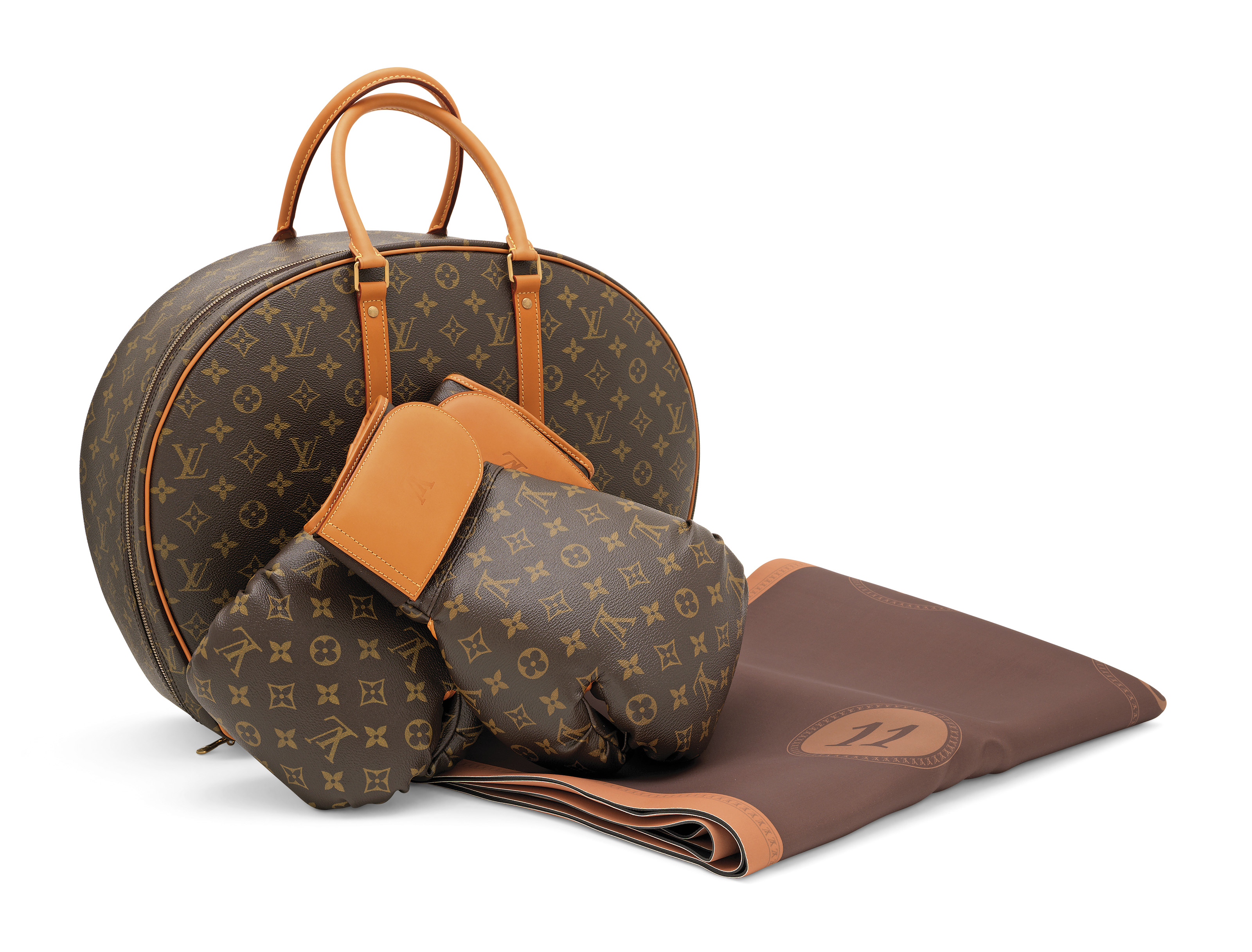A limited-edition Iconoclast monogram canvas set of boxing gloves, mat and case by Karl Lagerfeld, Louis Vuitton, 2014. 47 w x 37 h x 14 d cm. Sold for £6,000 on 19 November 2019 at Christie’s in London
