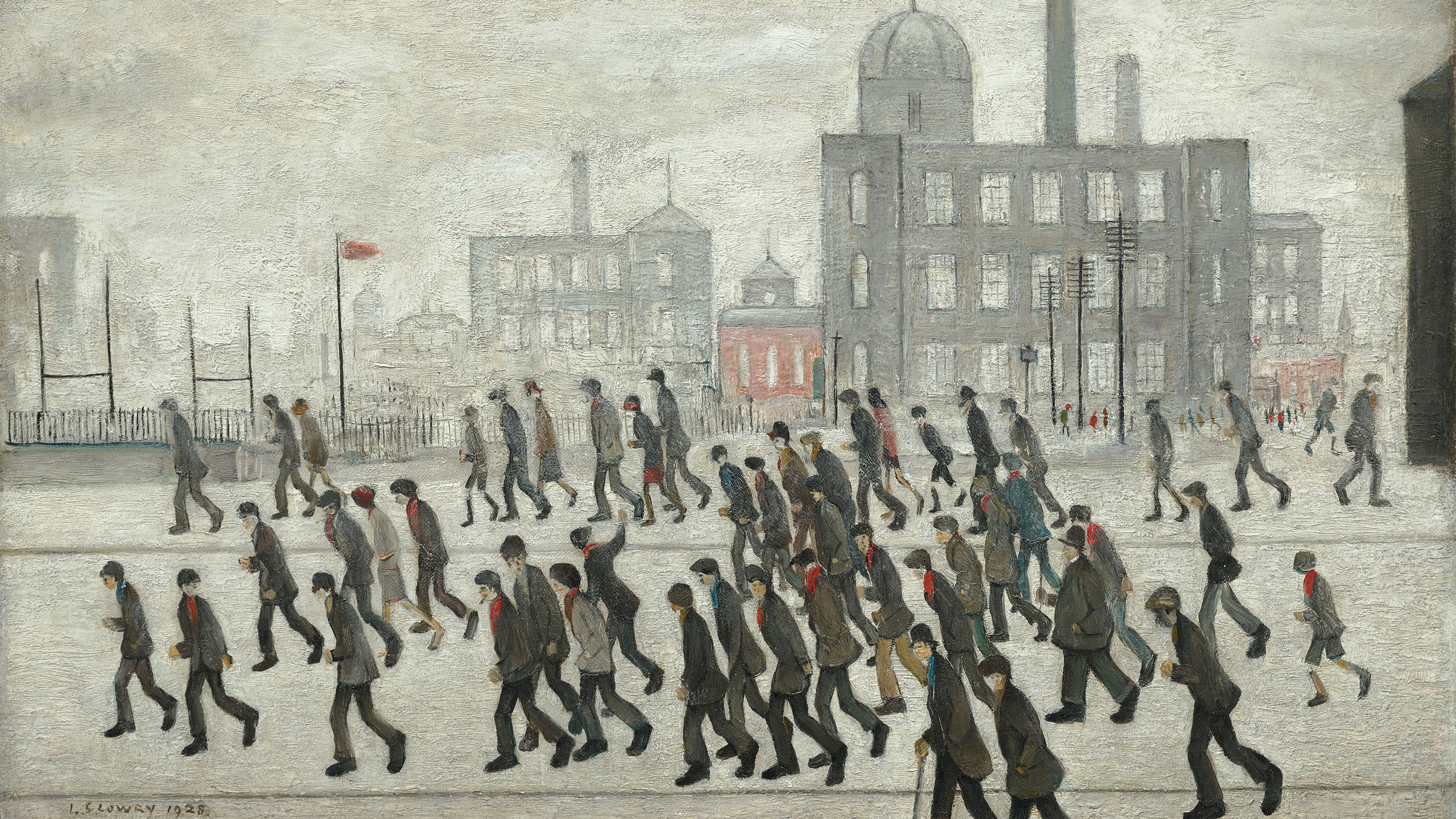 ‘My ambition,’ Lowry once said, ‘was to put the industrial scene on the map, because nobody [before] had done it seriously.’ For Lowry, that scene specifically meant the urban landscape of Lancashire in north-west England, which he inhabited his entire life: one synonymous with terraced houses, mills and factories. In many celebrated paintings — for example, Going to Work — he captured workers pouring in and out of such factories.