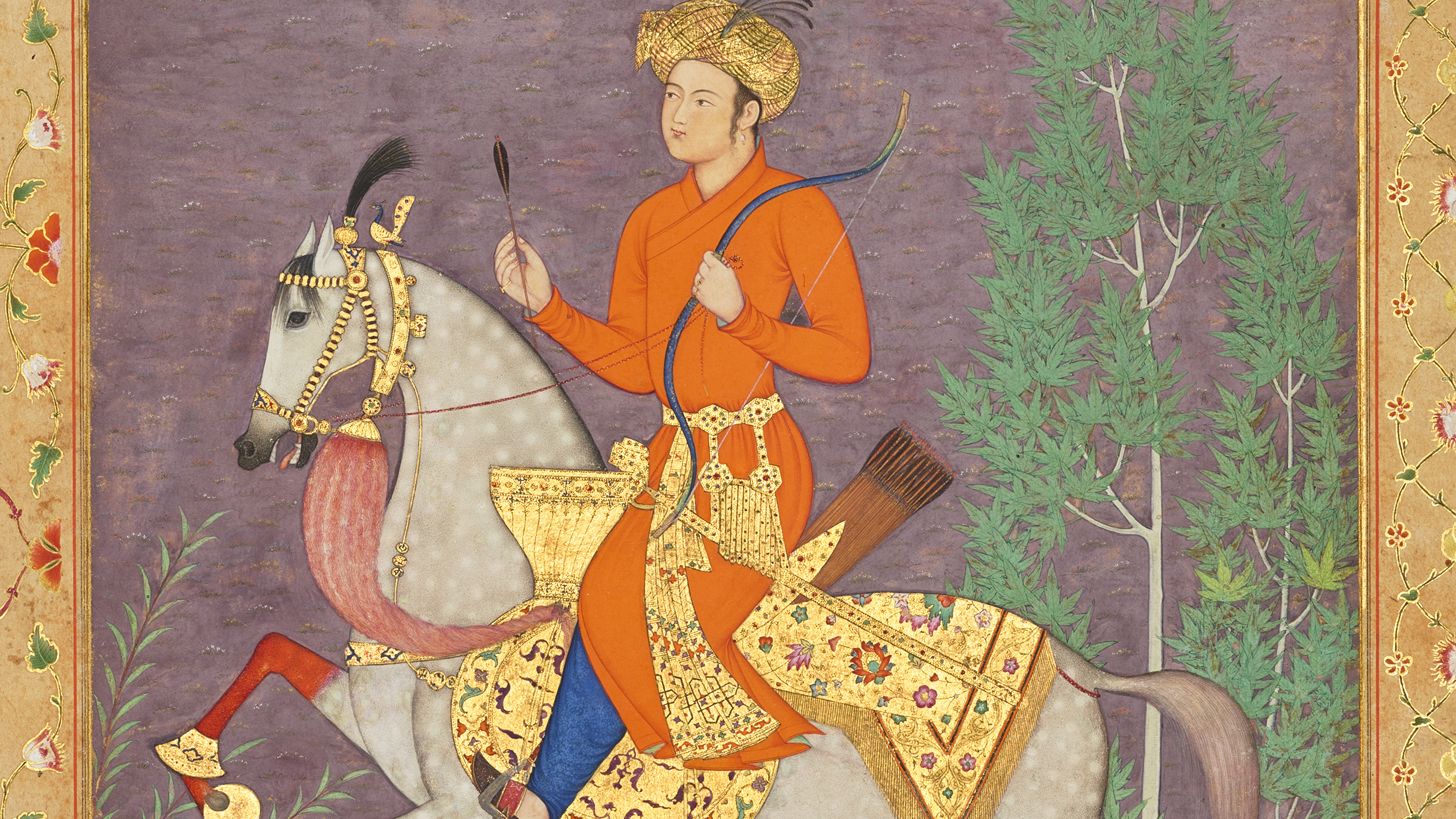 A Prince Hawking (detail). The painting attributed to Muhammad Ali, Mughal India, circa 1610; the margins Mughal India, circa 1650-58. Opaque pigments heightened with pricked gold and silver on paper. Painting: 7½ x 6⅜ in (19.1 x 16.3 cm); folio: 14⅜ x 9¾ in (36.5 x 24.9 cm). Sold for £3,954,000 on 28 October 2025 at Christie’s in London