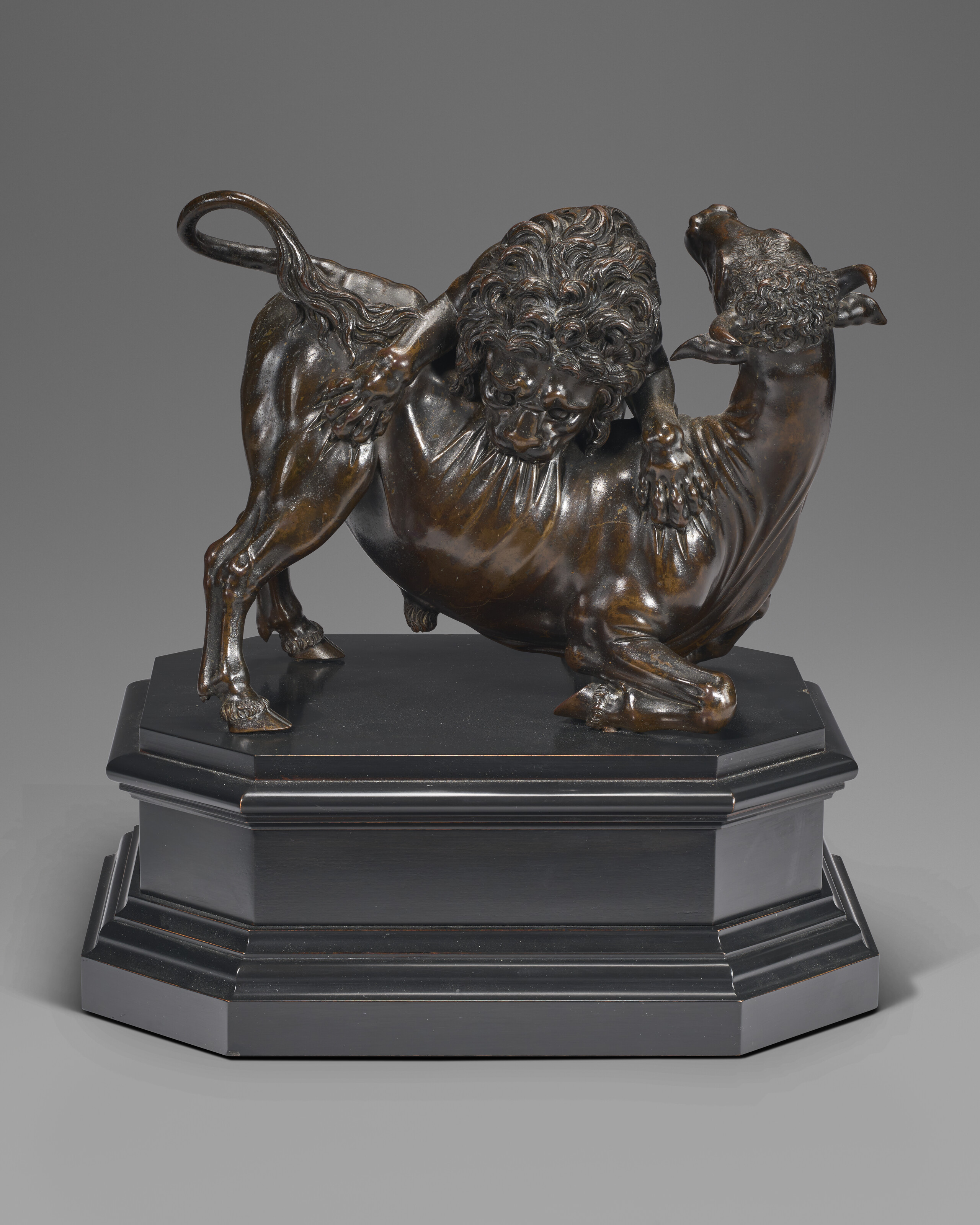After a model by Giambologna, cast by Antonio Susini (1580-1624), A bronze model of lion attacking a bull, early 17th century. 8¼ in (21 cm) high; 13 in (33 cm) high, overall. Estimate: $200,000-300,000. Offered in A Life of Discerning Passions: The Collection of H. Rodes Sr. and Patricia Hart: Live on 5 February 2026 at Christie’s in New York