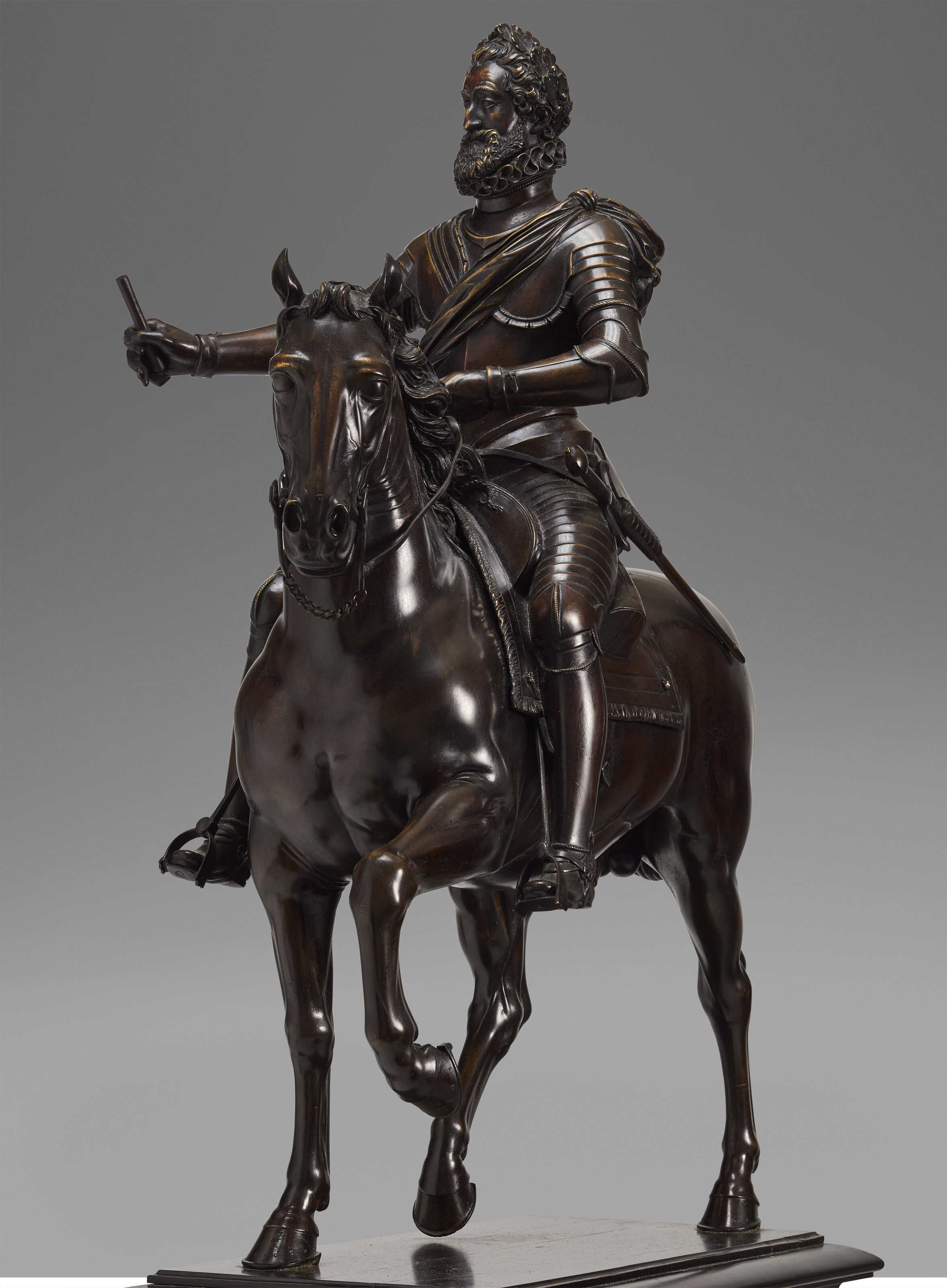 By Barthélemy Prieur (1536-1611) and probably cast and finished by Guillaume Dupre (1579-1640), A bronze group of Henri IV on horseback, c. 1610. 22½ in. (56.5 cm) high 30 in (76.2 cm) high, overall. Estimate: $1,500,000-2,500,000. Offered in A Life of Discerning Passions: The Collection of H. Rodes Sr. and Patricia Hart: Live on 5 February 2026 at Christie’s in New York