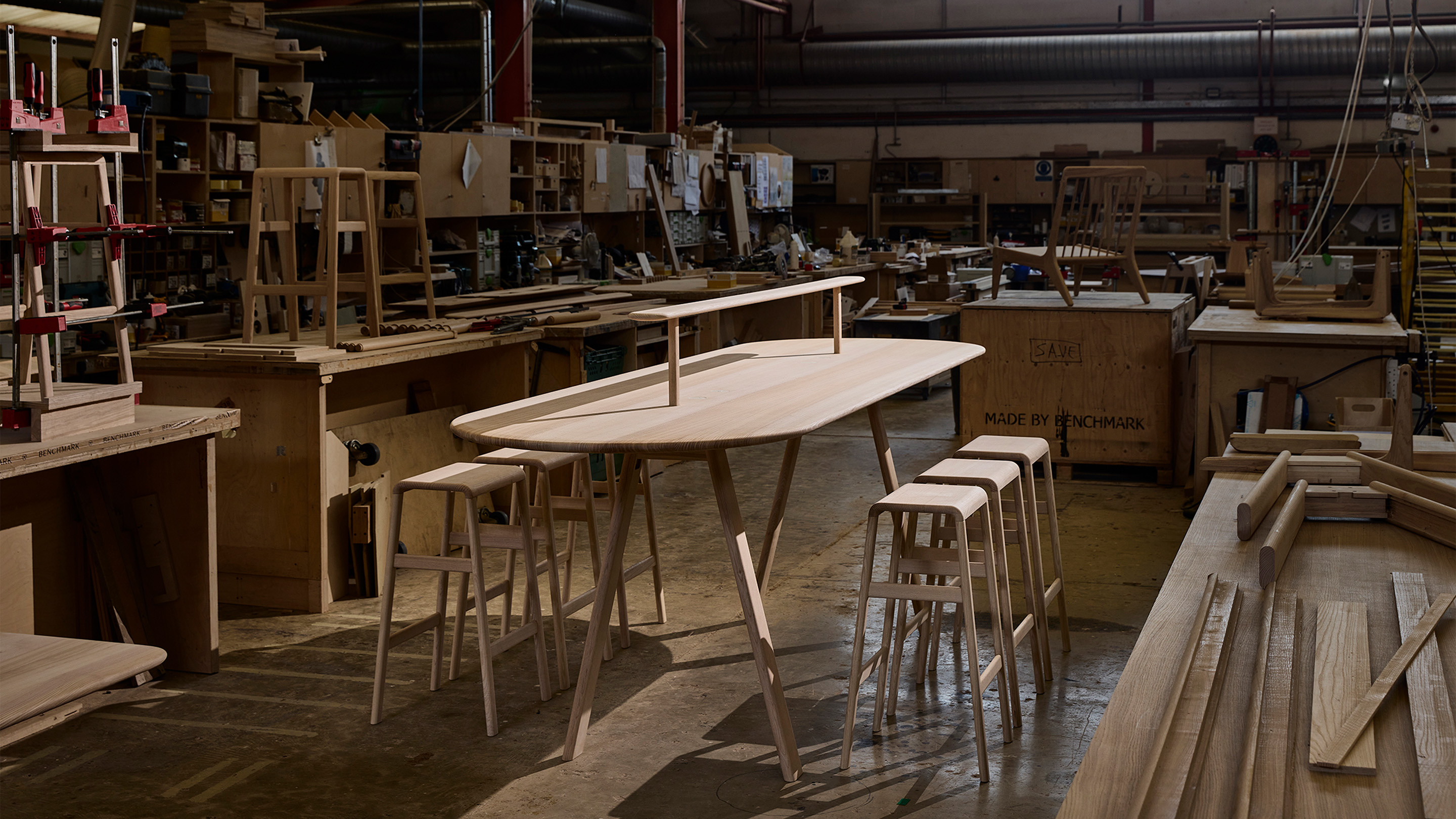 Benchmark is still dedicated to craft and sustainability, but now occupies a 35,000-square-foot space on Conran’s former estate, and employs a team of about 70 people. At one end of the scale, it produces furniture designed both in-house and by a roster of emerging talents and leading names. At the other end, it creates bespoke interiors for offices, hotels, restaurants, universities and other institutions. ‘The golden thread of our business is creating things to last for generations,’ says managing director Martin Penrose.