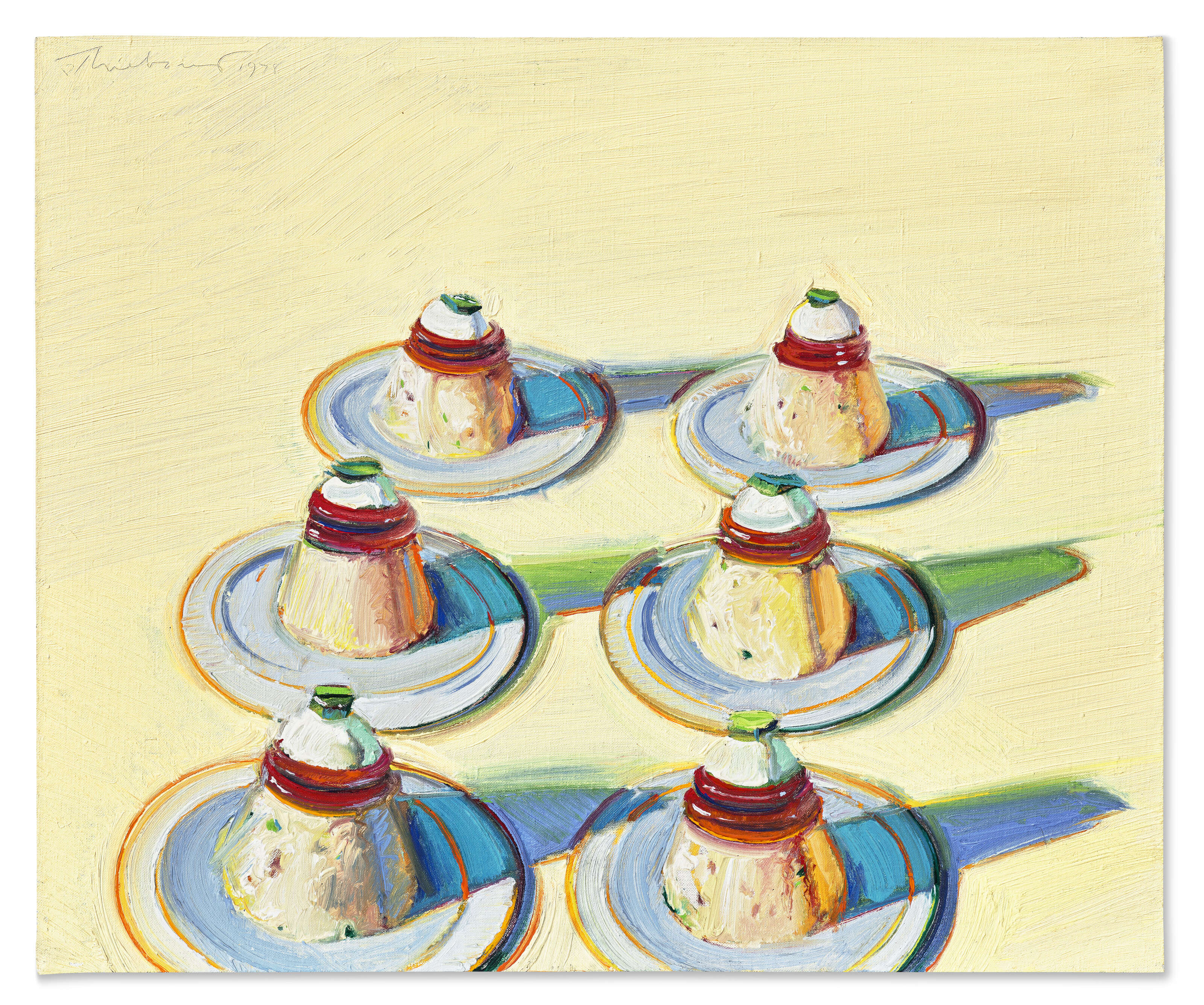 Wayne Thiebaud (1920-2021), Timballi di Riso, 1978. Oil on canvas. 20 x 24 in (50.8 x 61 cm). Estimate: $800,000 –1,200,000. Offered in the Post-War & Contemporary Art Day Sale on 20 November 2025 at Christie’s in New York