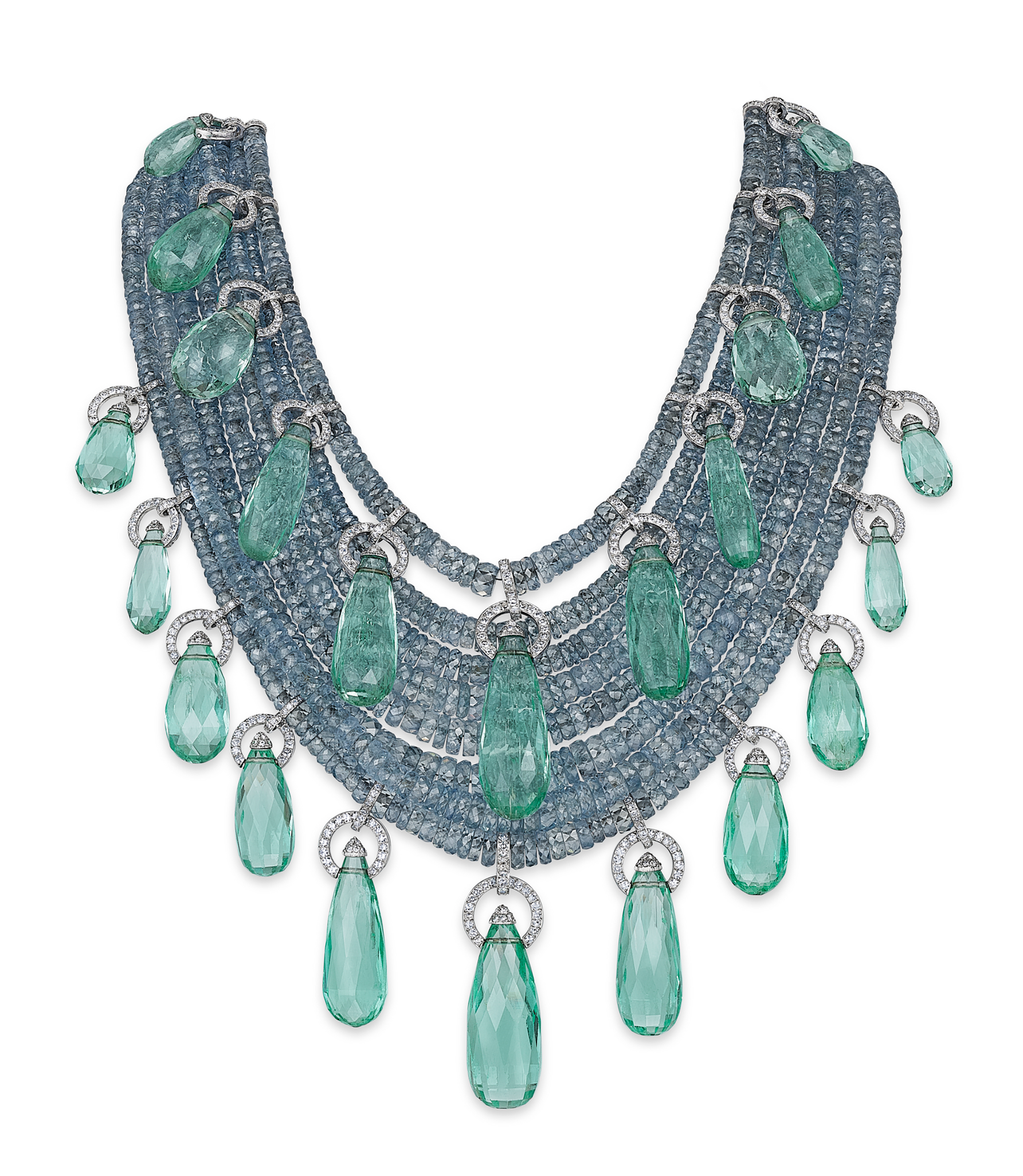 蓝宝石、祖母绿及钻石项链,JAR设计。此拍品于2025年6月17日在佳士得纽约售出,成交价美元 1,502,000