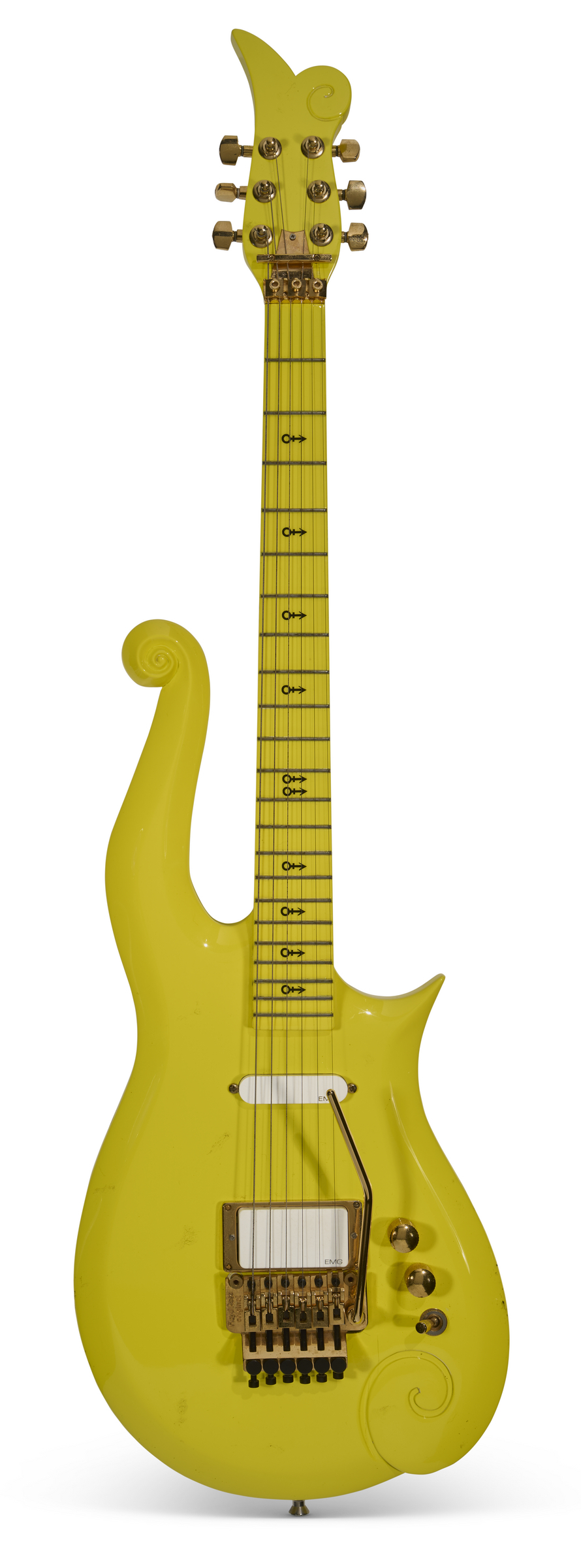 Prince: A custom yellow cloud guitar Andy Beech, Bellingham, Washington, c. 1993. Estimate: $100,000-150,000. Offered in The Jim Irsay Collection: Hall of Fame on 12 March 2026 at Christie's in New York