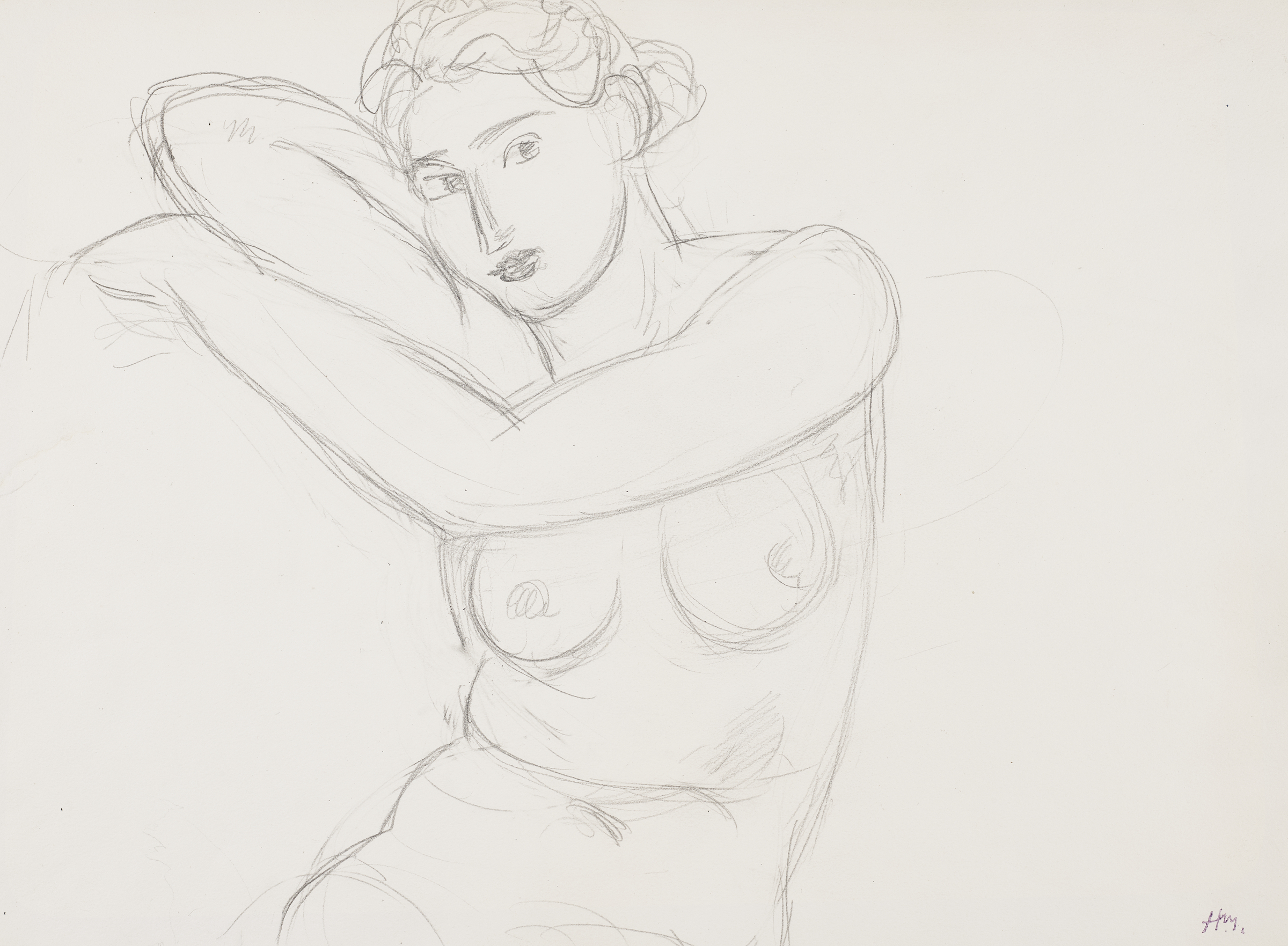 Henri Matisse (1869-1954), Torse de nu, 1935. Pencil on paper. 11 x 14⅞ in (28.3 x 37.9 cm). Estimate: $30,000-40,000. Offered in Henri Matisse: Lines of Connection, Works on Paper From the Pierre and Tana Matisse Foundation on 24 September – 8 October 2025 at Christie’s in New York