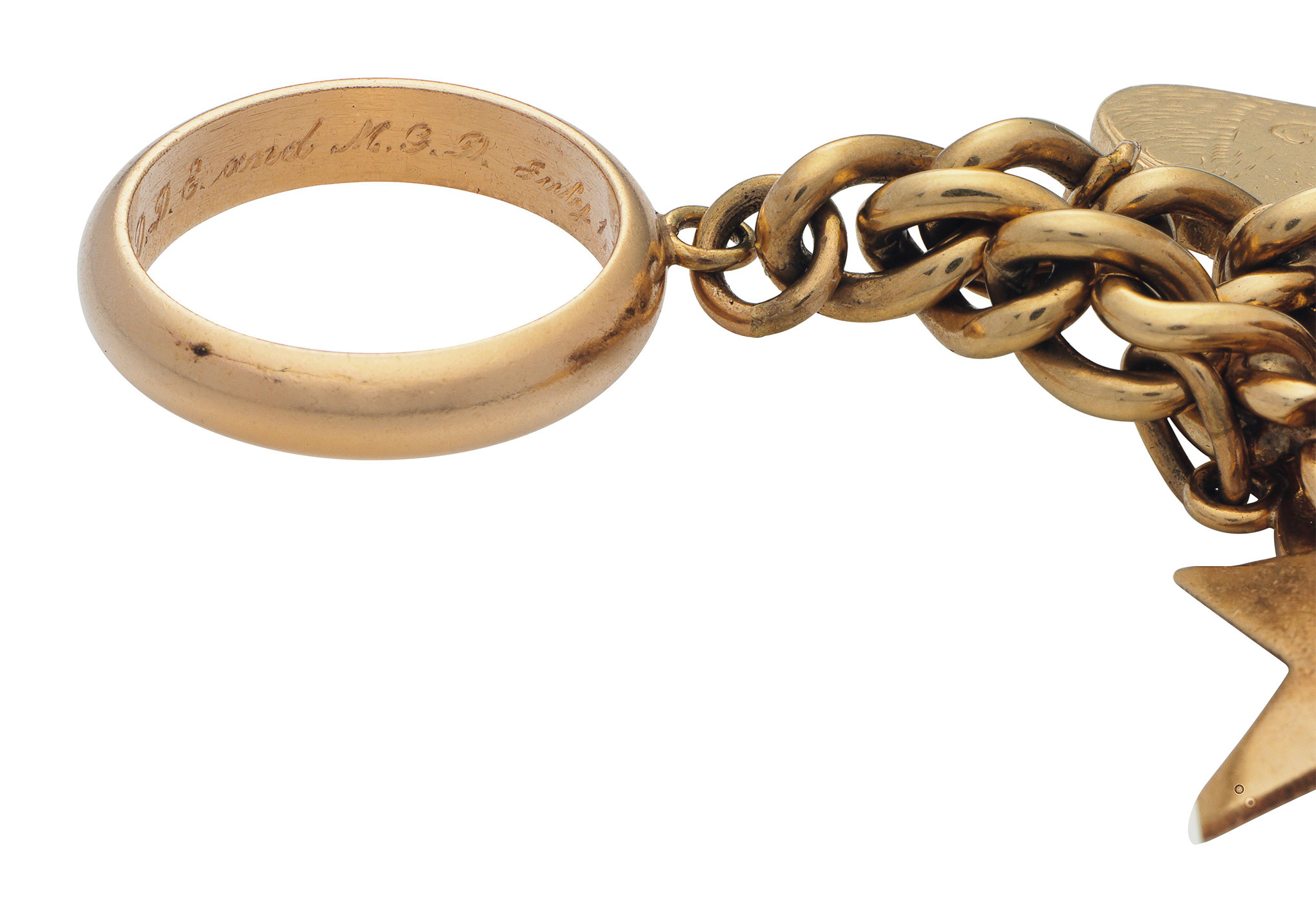 Mamie Eisenhower’s cheerful smile and positive energy, along with her designer clothes and famous bangs, which were styled by Elizabeth Arden in Paris, were among her trademarks as First Lady. Her style was personalised with accessories such as pearl chokers and button earrings, glittery pins, fitted hats, mink stoles, full-length fur coats, and charm bracelets, such as this one that commemorates important milestones in her life. A selection of Mamie Eisenhower’s jewellery is offered in Magnificent Jewels on 6 December and in Christie’s Jewels Online from 29 November to 7 December.