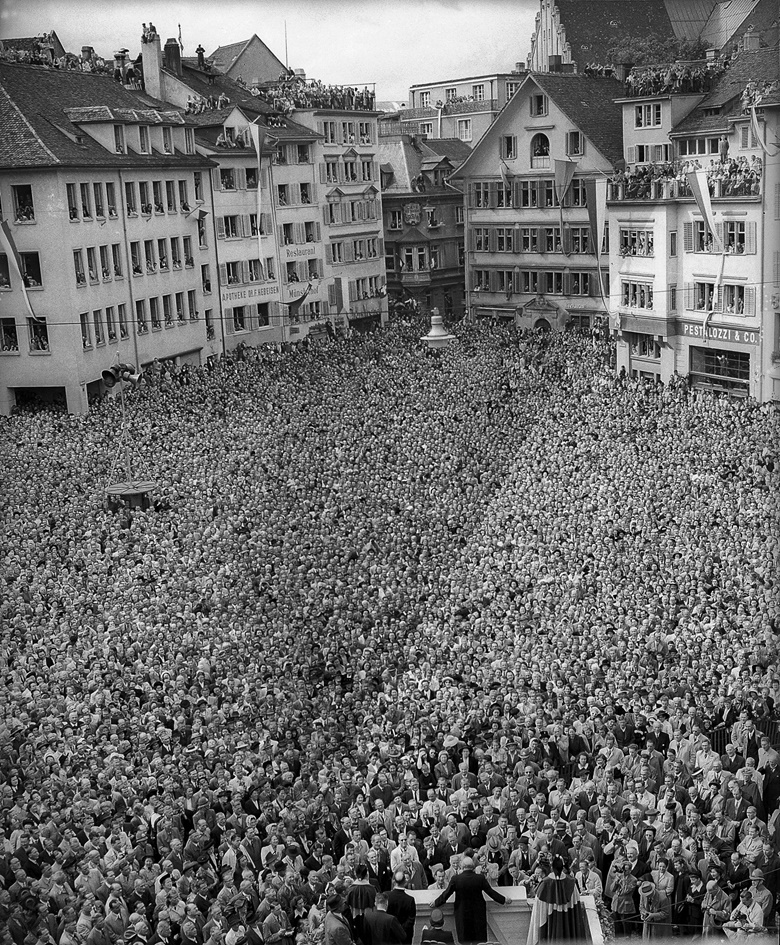 Winston Churchill speaking to the people of Zurich in 1946. Photo: RDB/ullstein bild via Getty Images