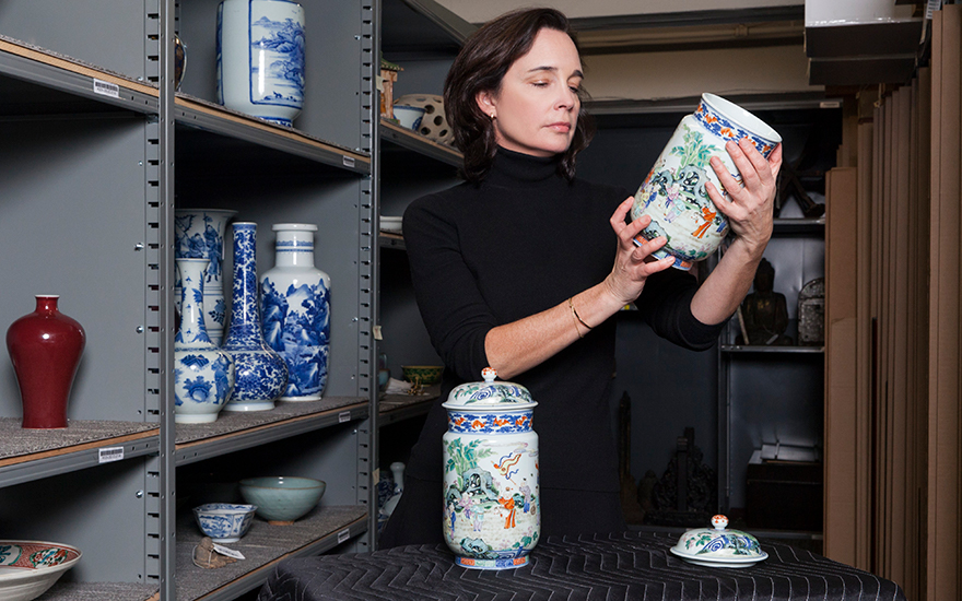 Specialist Margaret Gristina admires these Chinese jars that were made for an emperor and owned by retail magnate John Wanamaker