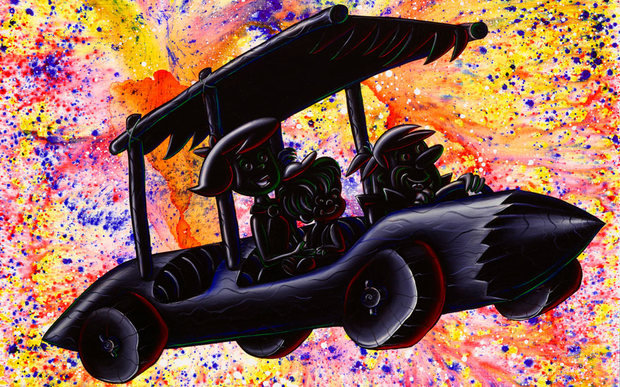 Advised to paint what he loved, the young Kenny Scharf focused on the Flintstones. In 2012 he revisited the theme — adding a Warholian twist