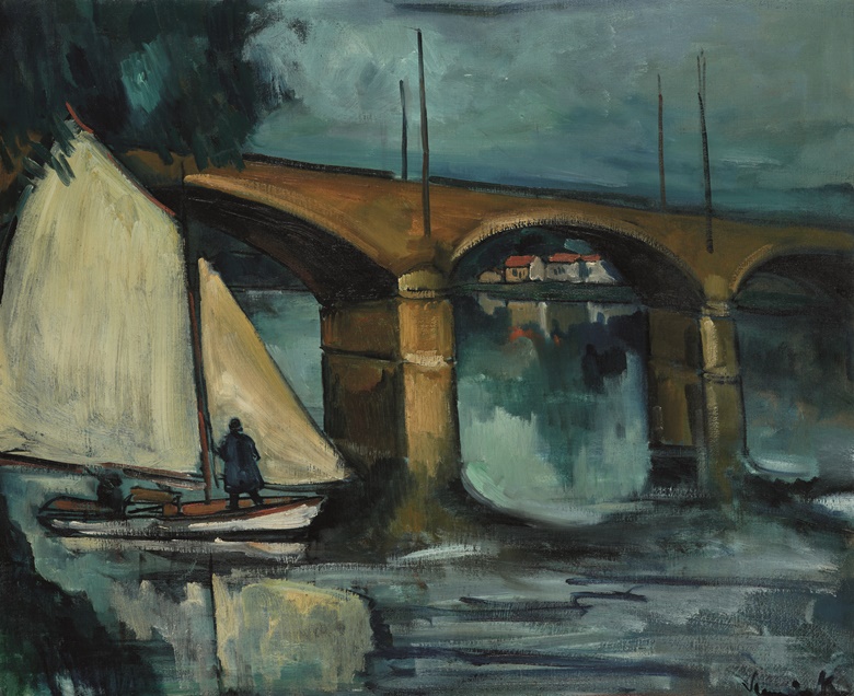 Maurice de Vlaminck (1876-1958), Voiliers à Chatou ou Le Pont de chemin de fer à Chatou, 1908. Oil on canvas. 23¾ x 28¾ in (60.3 x 73 cm). Estimate: €200,000-300,000. Offered in Oeuvres Modernes sur papier / Art Impressionniste et Moderne on 31 March at Christie’s in Paris