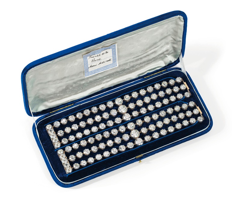 The historic Marie-Antoinette diamonds, a pair of diamond bracelets. Sold for CHF 7,459,000 on 9 November 2021 at Christie’s in Geneva