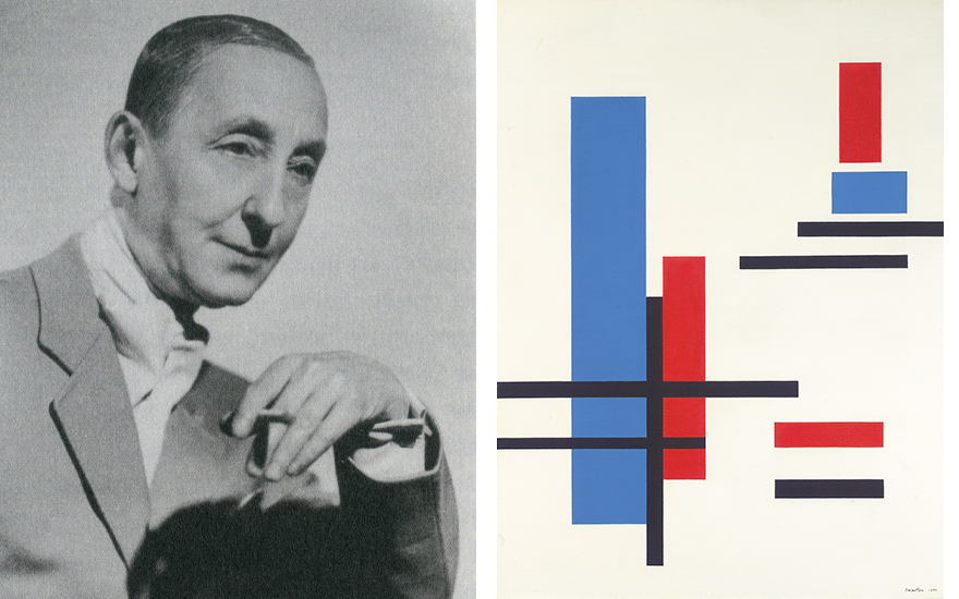 For the next decade, Moss socialised and exhibited with a close-knit group of Constructivists, among them Georges Vantongerloo, Theo van Doesburg, Auguste Herbin, Fausto Melotti and Jean Arp — all dedicated to reducing a fast-paced, technologically revolutionary modern world to primary colours and straight lines.
