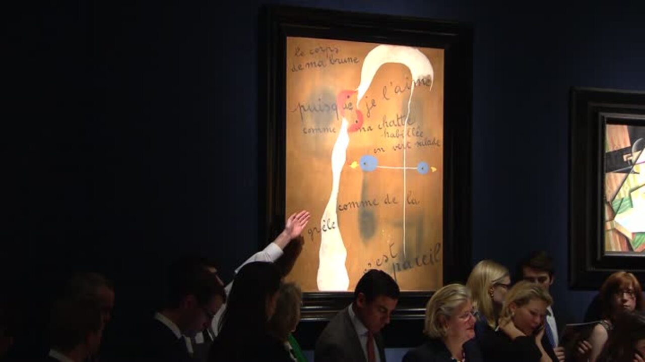 In The Saleroom: Joan Miro, Painting-Poem ("le corps de ma brune puisque je l'aime comme ma chatte habillée en vert salade comme de la grêle c'est pareil")