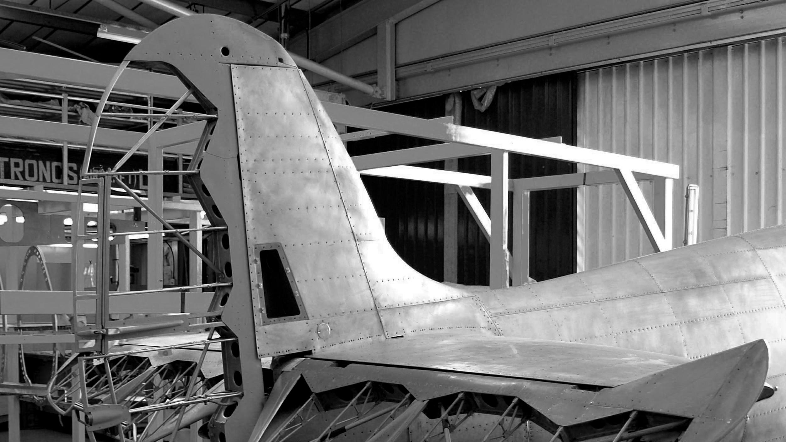 Where possible, original components from the wreck of P9374 were included. The fuselage ‘tube’ was constructed by Airframe Assemblies on the Isle of Wight, not far from its original birthplace, with the wings being built at Duxford in 2007 by the Aircraft Restoration Company. The fuselage and wings were married up at Duxford in July 2008 where P9374 was fitted out, painted and finished. The engine and propeller had been re-engineered and constructed by Retro-Track & Air of Cam, Gloucestershire, and successful ground-runs of the installed engine were conducted in June 2011. Many components from the original engine of P9374 were incorporated into the build.