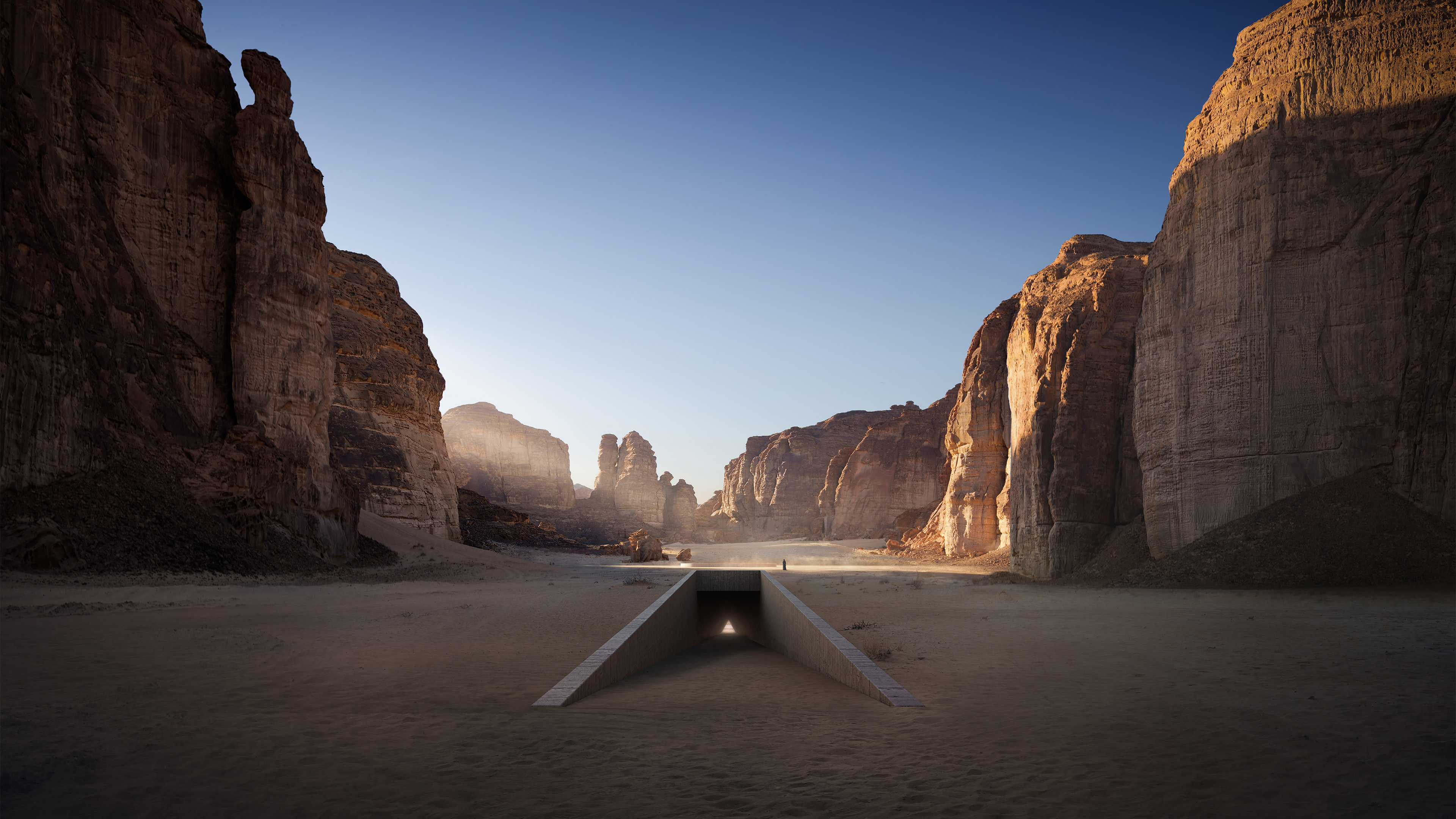 Visitors to Ashab Al-Lal descend through a tunnel into a subterranean chamber, where a mirage will reflect their image above ground. Courtesy of Ahmed Mater