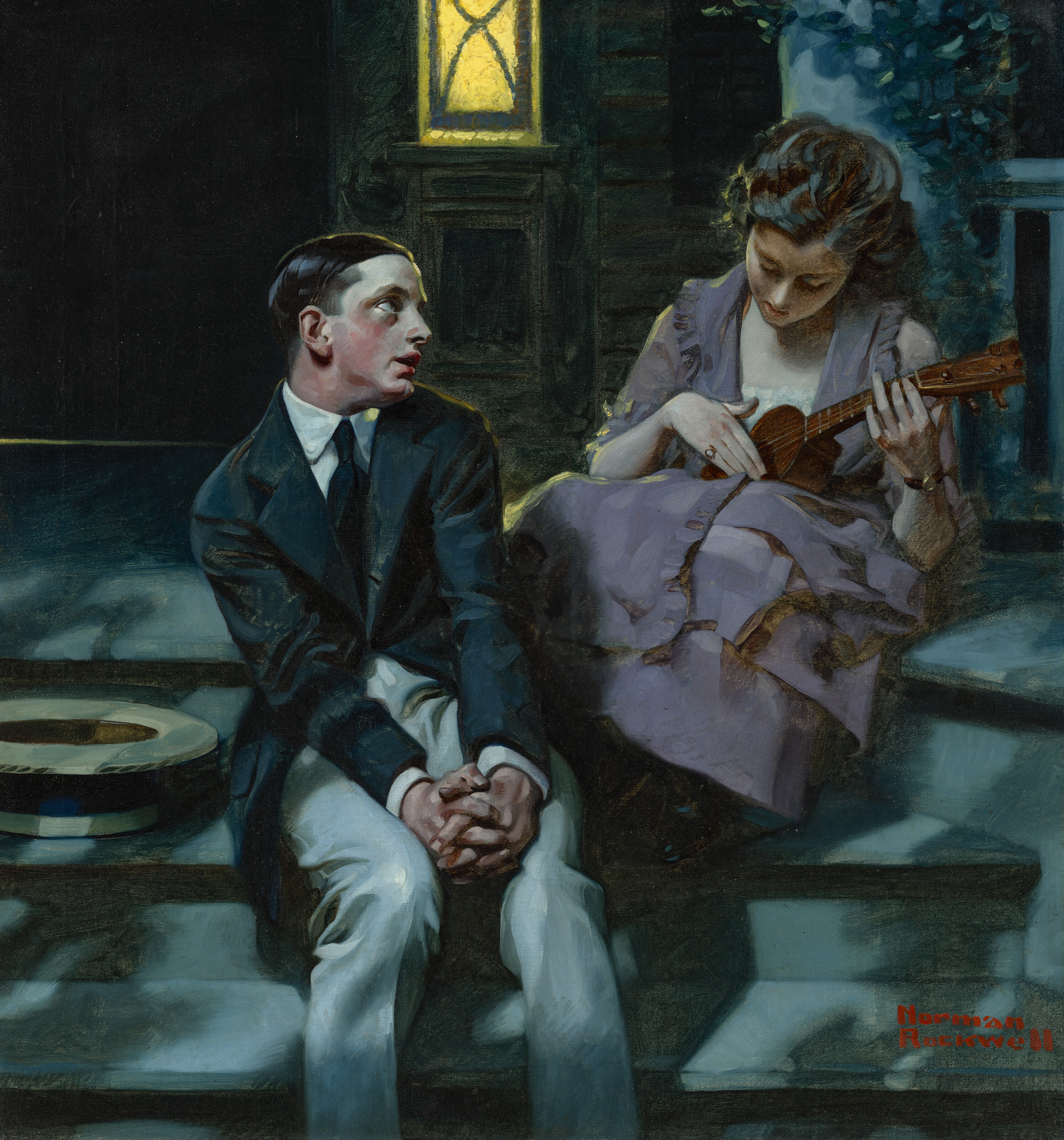 Norman Rockwell (1894-1978), Ukulele Serenade, c. 1925. Oil on canvas. 26 x 24 in (66 x 61 cm). Estimate: $300,000-500,000. Offered in Modern American Art on 16 April 2026 at Christie’s in New York