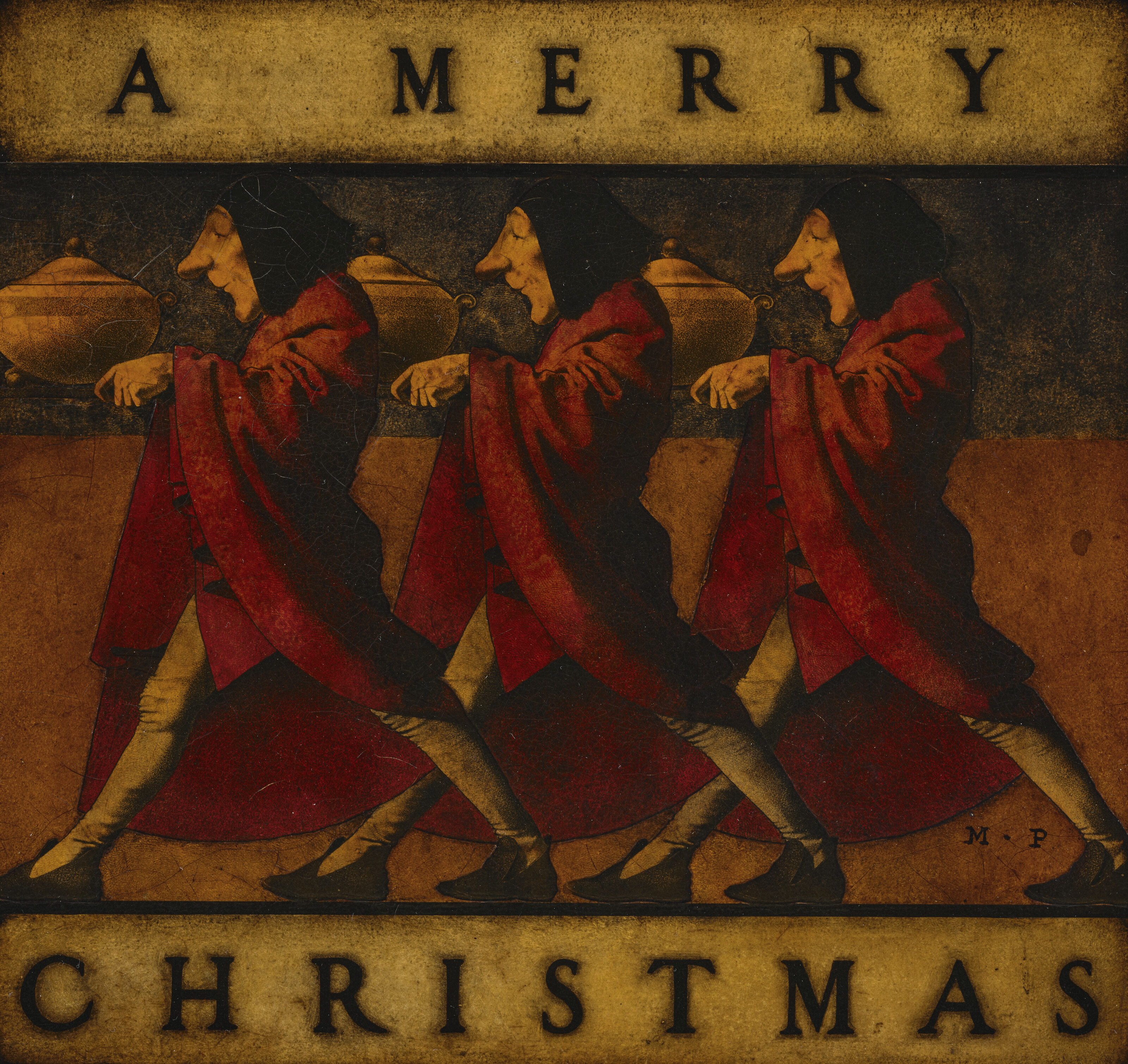 Maxfield Parrish (1870-1966), A Merry Christmas, 1903. Oil and collage on board. 11¾ x 12¾ in (29.8 x 32.3 cm). Estimate: $70,000-100,000. Offered in Modern American Art on 16 April 2026 at Christie’s in New York