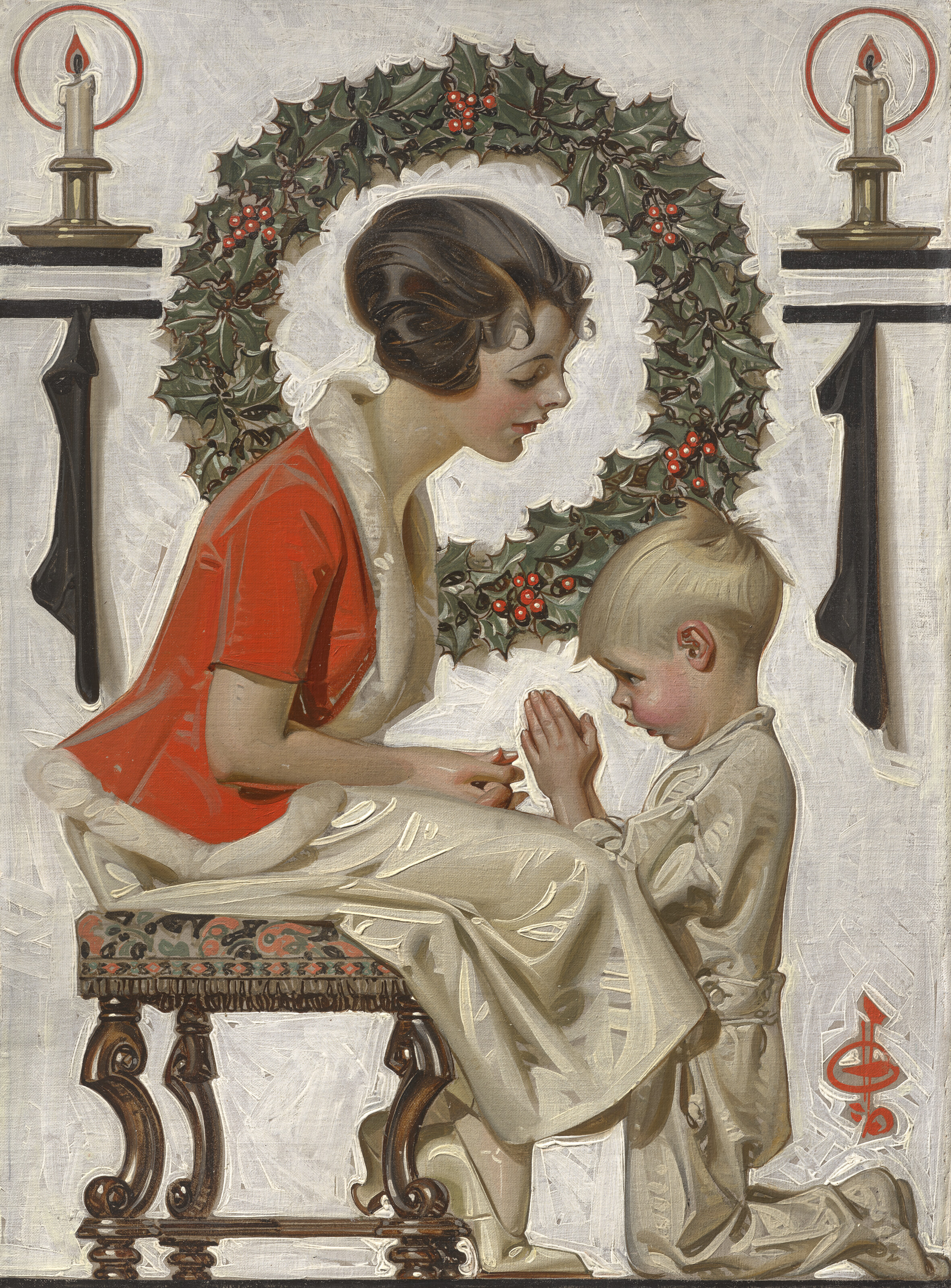 Joseph Christian Leyendecker (1874-1951), Christmas Prayers, c. 1921. Oil on canvas. 26¼ x 19½ in (66.7 x 49.5 cm). Estimate: $150,000-250,000. Offered in Modern American Art on 16 April 2026 at Christie’s in New York