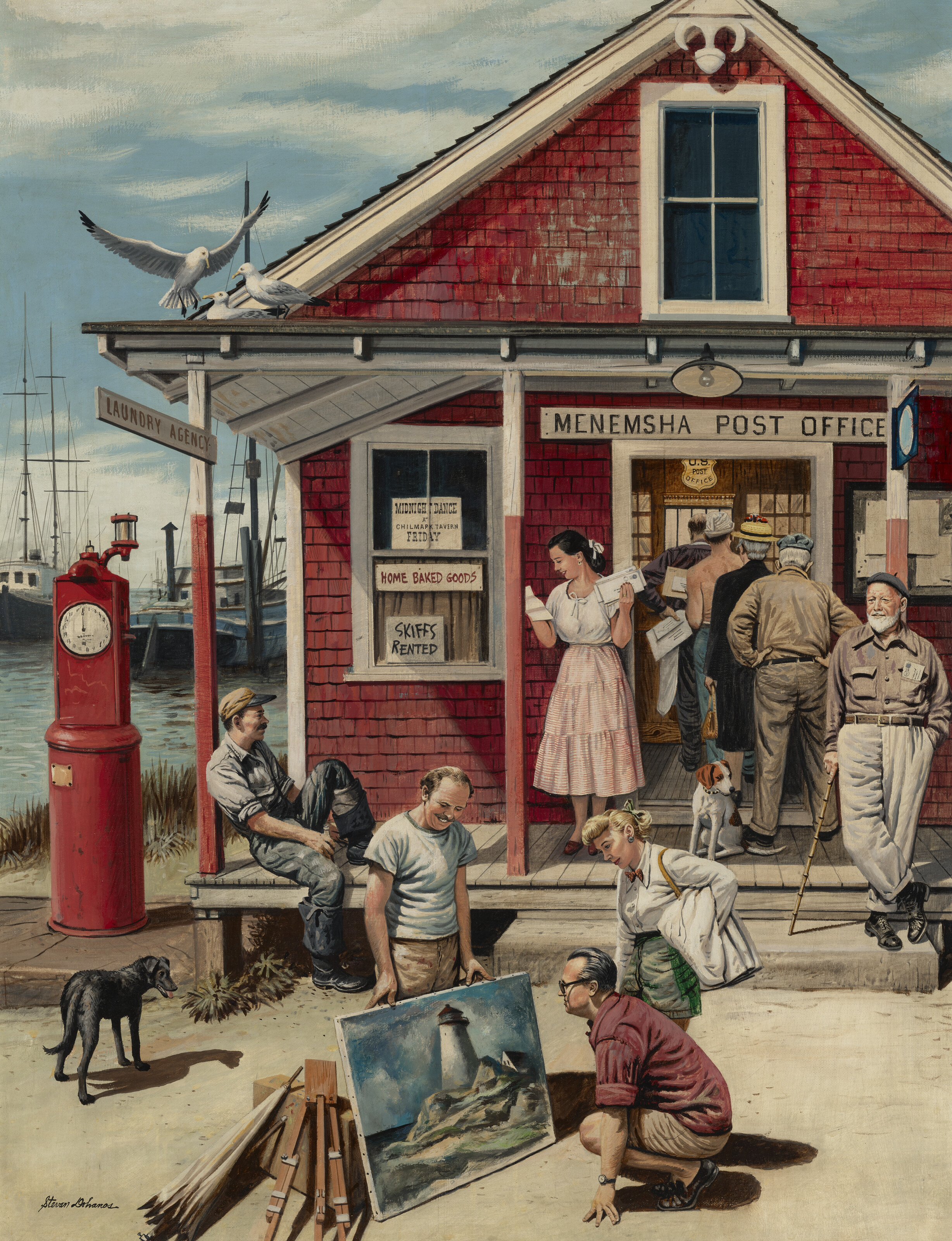 Stevan Dohanos (1907-1994), Menemsha, Massachusetts, Post Office, c. 1950. Oil on canvas. 39 x 30 in (99.1 x 76.2 cm). Estimate: $120,000-180,000. Offered in Modern American Art on 16 April 2026 at Christie’s in New York