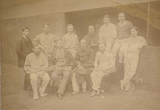 Manchester tennis court, 18 February 1882. Photograph mounted on card with title and players’ names in ink. 8¾ x 10¾ in (22 x 27cm). Sold for £1,200 on 16 November 2005 at Christie’s in London