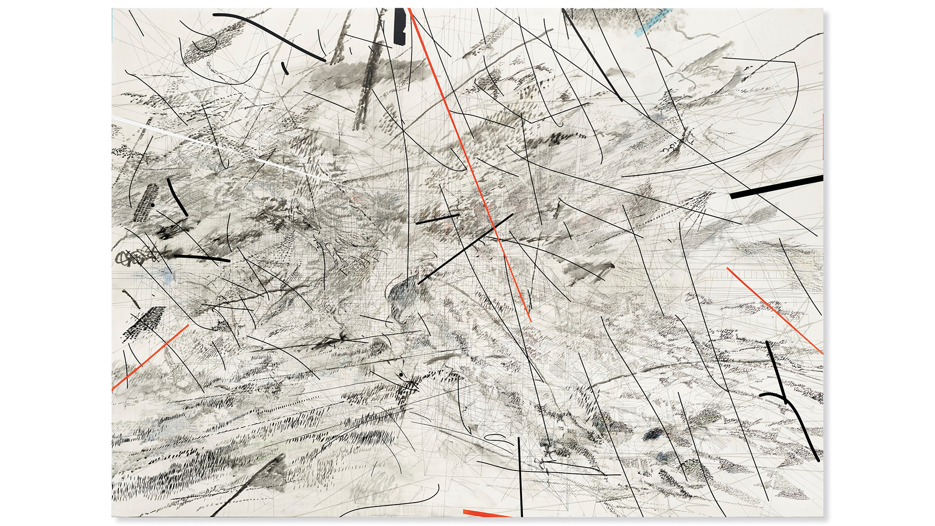 Blue Magic invites slow, extended attention. For Mehretu, abstraction is an antidote to the unrelentingly high pace of today’s world. ‘Speed is driving the momentum of the structure in which we’re all caught,’ she has said. ‘One of the most essential parts of being an artist is to make works that have the power of slowness against the deployment of speed.’