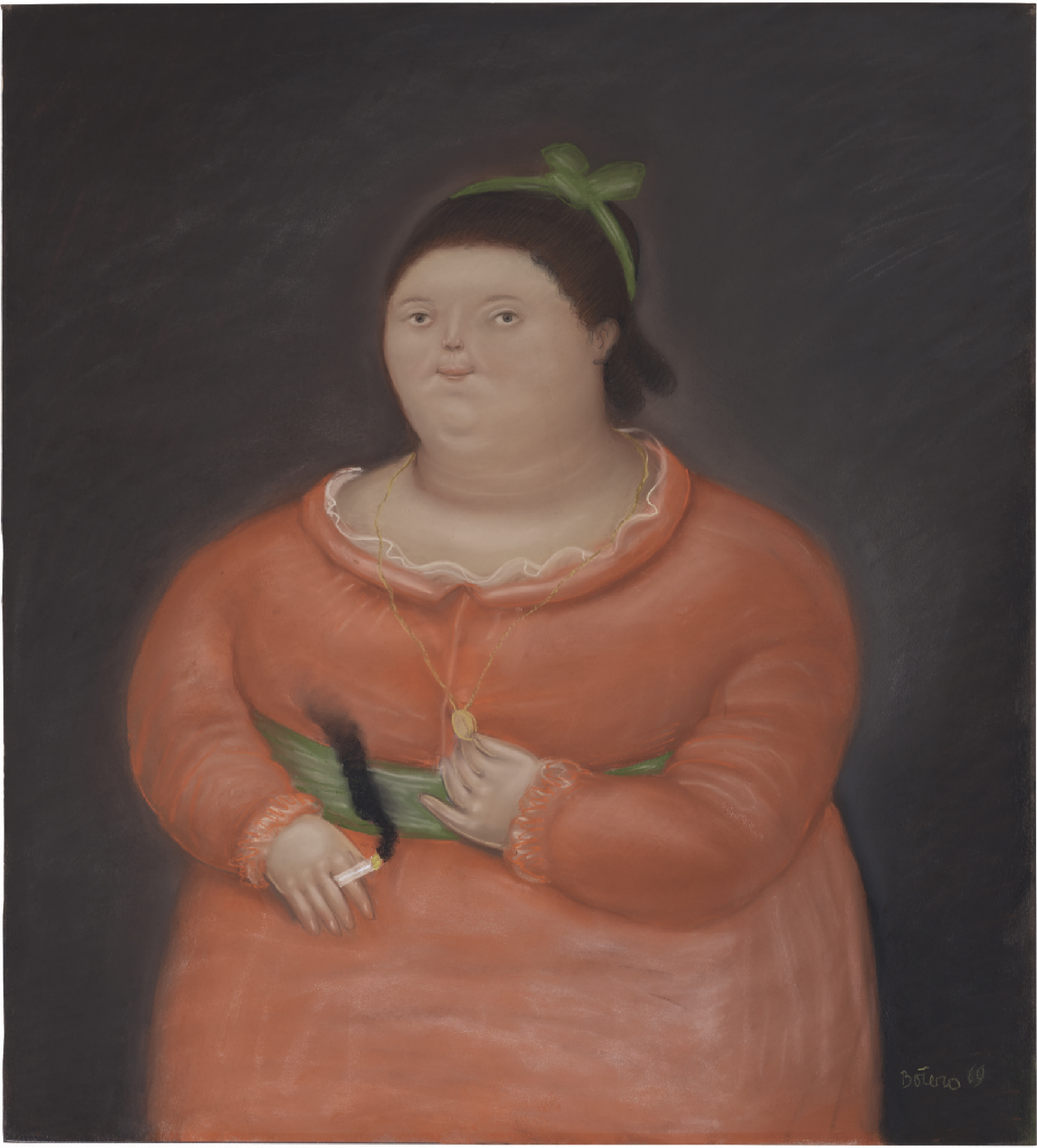 Fernando Botero (1932-2023), Woman with Cigarette, 1969. Pastel on paper. 34½ x 31¼ in (87.6 x 79.4 cm). Estimate: $150,000-250,000. Offered in Post-War to Present on 26 February 2026 at Christie’s in New York