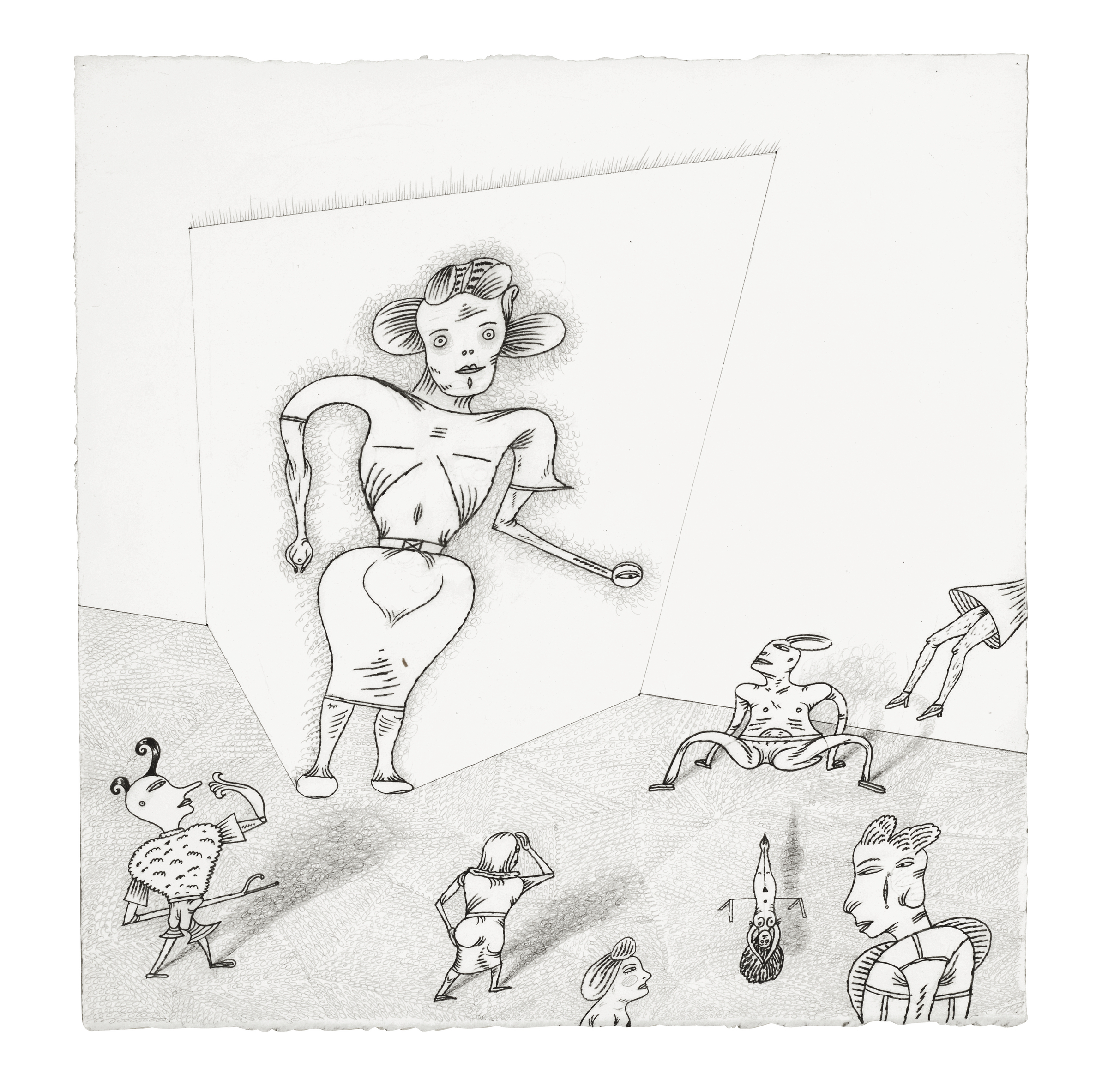 Jim Nutt (b. 1938), Oh, I feel lost, 1977. Ink and graphite on paper. 11¼ x 10⅞ in (28.2 x 27.2 cm). Estimate: $20,000-30,000. Offered in First Open | Post-War & Contemporary Art, featuring Drawings from the Collection of the Late Janie C. Lee, Sold for the Benefit of the Menil Drawing Institute on 17-27 February 2026 at Christie’s in New York