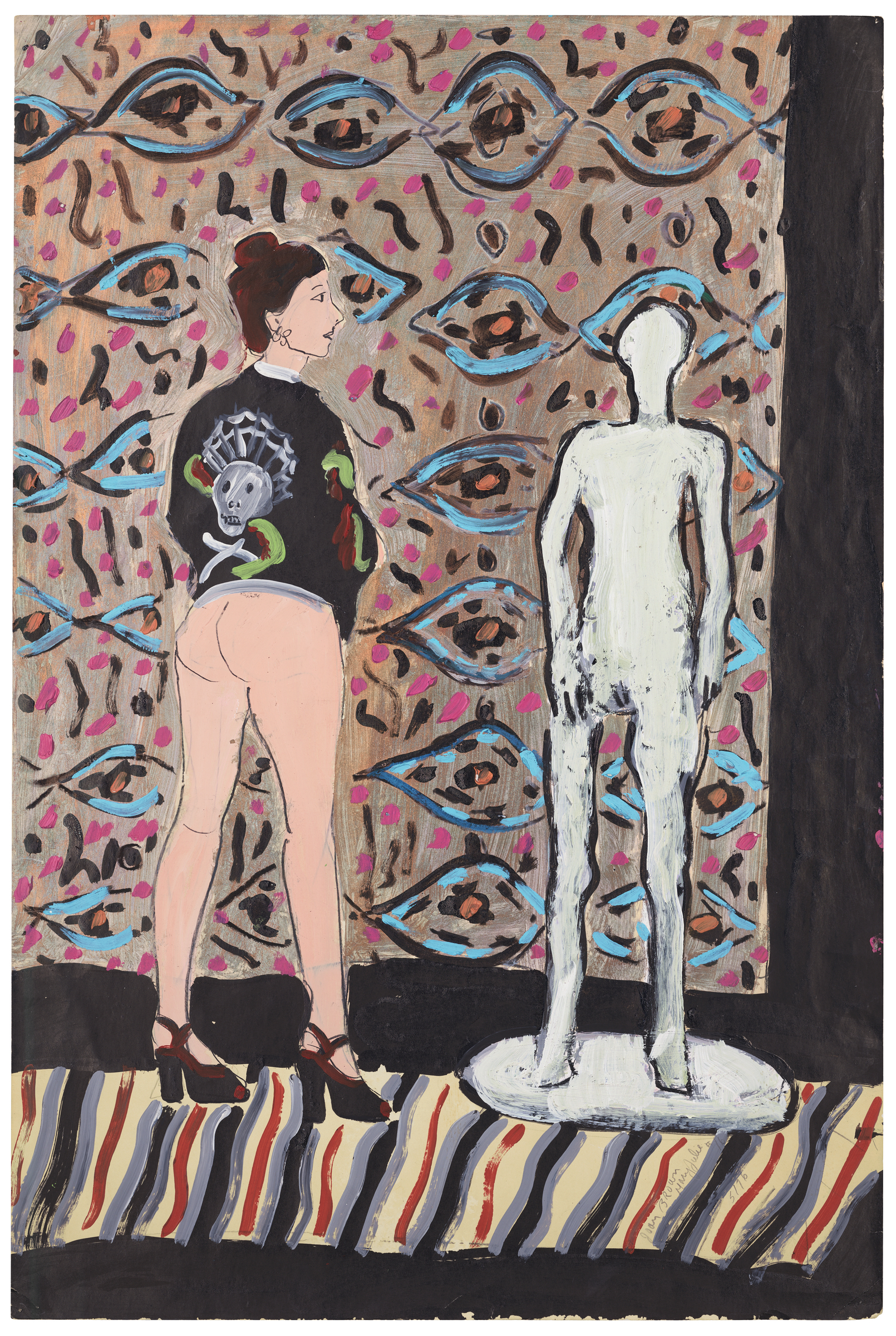 Joan Brown (1938-1990), Mary Julia #16, 1976. Acrylic, metallic paint, gouache, ink and crayon on paper. 36 x 24 in (91.4 x 61cm). Estimate: $8,000-12,000. Offered in Post-War to Present on 26 February 2026 at Christie’s in New York. Joan Brown’s After the Alcatraz Swim #2 (1975) set a record for the artist at auction when it sold for $596,900 on 19 November 2026 at Christie’s in New York